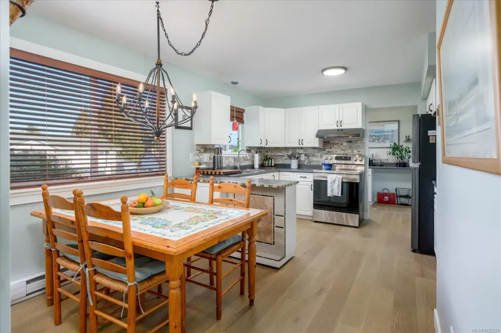 Immaculate and cute as a button, this beautifully updated 3-bedroom rancher is tucked away on a quiet cul-de-sac & is walking distance to schools, parks & the community centre. This move-in ready home features recent updates incl. white oak engineered flooring, new stove, new washer/dryer & a refreshed bathroom w/ a new vanity. The bright, cheery kitchen provides ample storage & prep space, complete w/ a moveable island & butler’s pantry—ideal for entertaining or with potential to convert into an ensuite. The spacious living rm is warm & inviting, overlooking the stunning garden. A generous laundry/mud rm & heated crawlspace add to the home’s thoughtful functionality. A true gardener’s dream, the yard boasts a 4-season perennial garden, mature landscaping & shed for extra storage. The large, private, fenced backyard offers plenty of space for & a covered patio for extended outdoor living. With tasteful updates, functional layout & peaceful location 615 Nash is a fantastic opportunity!