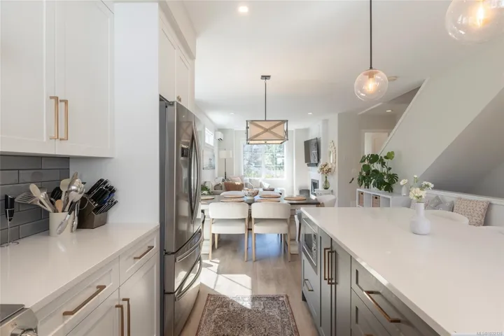 Welcome to Avery Lane by award-winning Abstract Developments—an exclusive boutique community of just 16 thoughtfully crafted homes in Victoria. This rare 4 bed, 4 bath corner end townhome offers exceptional natural light, added privacy, and a spacious, functional layout ideal for modern living. The open-concept main level showcases high-end finishings, a stylish kitchen with quality appliances, and seamless access to a spacious balcony complete with a gas BBQ outlet—perfect for entertaining. Upstairs and down, generous bedrooms provide flexibility for families, guests, or a home office. Enjoy year-round outdoor living on the private side patio featuring a custom pergola and gas fire table. A double car garage adds convenience and ample storage. Ideally located near parks, schools, shopping, and everyday amenities, this refined, low-maintenance home blends comfort, quality, and contemporary design.