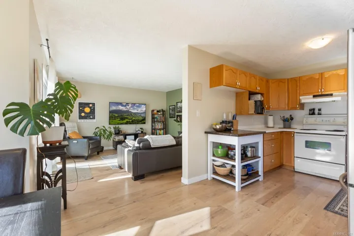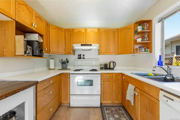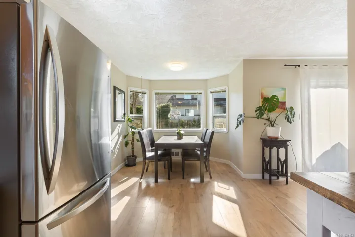 Welcome to sought-after Puntledge Park, just steps to trails, the river, schools, and downtown Courtenay. This well-maintained 4-bedroom, 2-bath half duplex offers 1,488 sq ft of comfortable, functional living. The main level features a bright living room with patio access, a spacious U-shaped kitchen with an eat-in area and a bay window, plus a mudroom and a 2-piece bath. Upstairs, four generous bedrooms provide flexibility for families, guests, or a home office, with the primary offering a walk-in closet. Enjoy the private, fully fenced backyard with sunny patio and established garden beds. Updates include laminate flooring, fresh paint, baseboards, a refreshed lower bath, and newer appliances. A fantastic opportunity in a family-friendly neighbourhood.