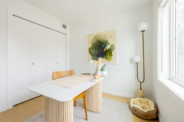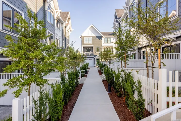 Welcome to Greyson, a brand-new community of naturally inspired family-sized townhomes by award-winning Abstract Developments. Just completed and one of the only townhomes in Saanich offering a true EV-ready, side-by-side 2-car enclosed garage, this rare 4 Bed, 3 Bath home delivers both space and long-term livability. Offering 1,545 sq ft, the home features 9’ ceilings, generous windows, and a bright main living area with a well-appointed kitchen showcasing quartz countertops, shaker-style cabinetry, stainless-steel appliances, full-height pantry & built-in desk. Enjoy two private outdoor spaces including patio framed by lush landscaping and classic white picket fencing. Located minutes from the amenity-rich Uptown Shopping District and the Galloping Goose trail, Greyson is perfectly positioned between the city’s outer limits and the downtown core for seamless connectivity within Victoria and beyond. Optional upgrade for AC available and 10-year home warranty. Price + GST.