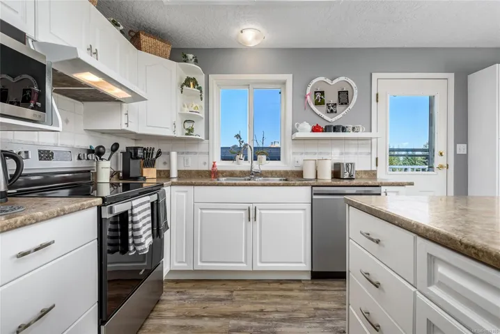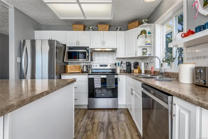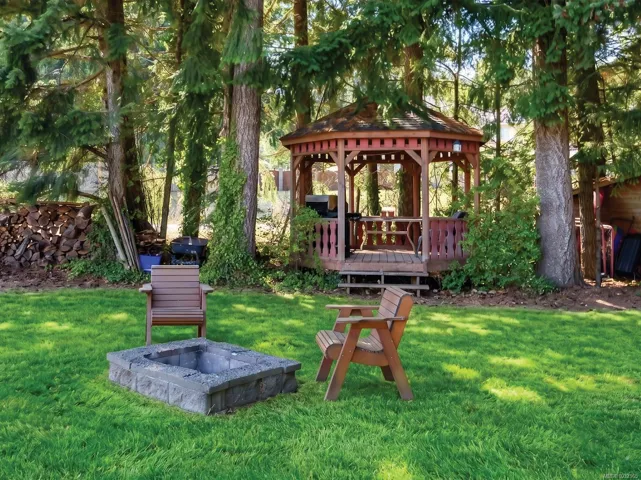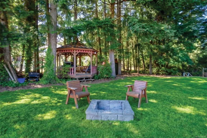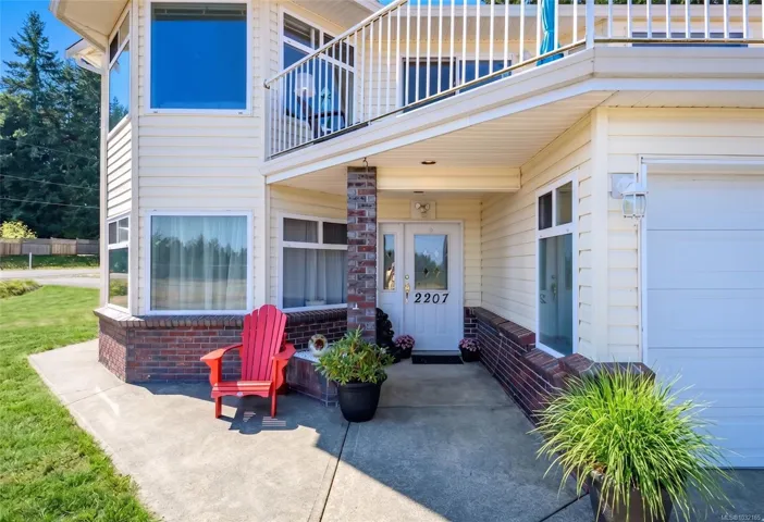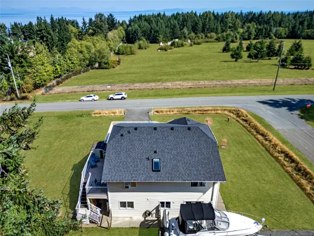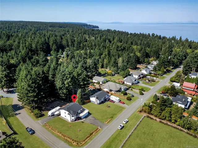 Rare offering on a 0.44ac corner lot in one of Courtenay North’s most tightly held acreage enclaves, the June Rd & Sea Lion Way pocket, mins to the Comox Peninsula. Faces open field & mature trees w/ peekaboo ocean views from the front deck. Seal Bay Park trails & beach access steps away. 2 driveways off different roads, generous RV/boat parking & room for a future shop or carriage house, subj. to CVRD approval. Upper level lives open & bright w/ gas FP, large windows, updated kitchen w/ new SS appliances, 3 beds & 2 baths incl. primary w/ ensuite. Recent upgrades: new roof, master bath & main floor flooring, hot water tank, windows, septic serviced & whole house PEX. Below, a non-conforming in-law suite (family use only) w/ private entrance, dedicated driveway, 2nd gas FP, full bath & in-suite laundry. Fully fenced yard w/ gazebo, fire pit & covered workshop. 10 mins to Comox, Costco, Crown Isle, hospital & airport. Book a private showing through your REALTOR®.