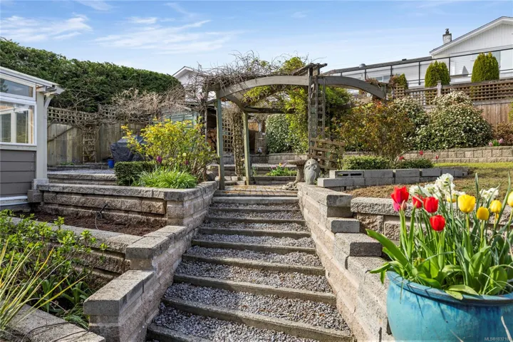 Ready to enjoy beautiful views of Departure Bay and Sugarloaf Mountain from your living room? Welcome to your next home. Lovingly maintained and updated over 22 yrs, this split-level home blends classic charm with thoughtful upgrades throughout. The upper level features 3 beds, ideal for families, while the lower level includes a 4th bed and workshop/storage space. The floorplan offers excellent flexibility & suite potential for extended family or added income with outside access through the basement. Upgrades include full landscaping, Hardi-Plank siding, vinyl windows, flooring throughout, updated kitchen and bathrooms, and newer hot water tank. Enjoy relaxation in the sunroom & garden while taking in the peaceful surroundings. Located in a quiet family-friendly neighbourhood near the Nanaimo Golf Course, Departure Bay Beach, Schools, & shopping, this property is a fantastic option for those seeking a scenic Vancouver Island lifestyle. Data & Measurements approx, verify if important.
