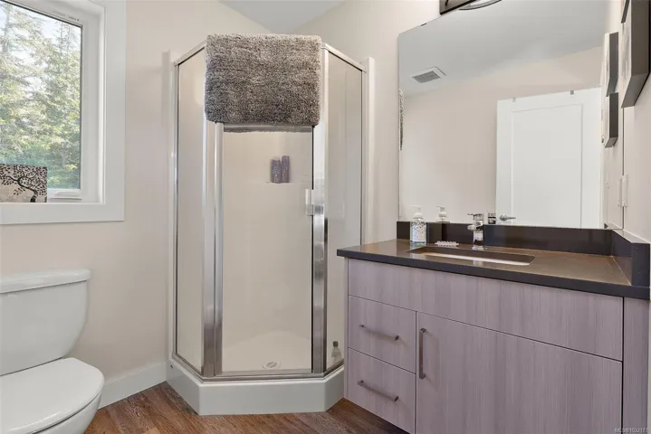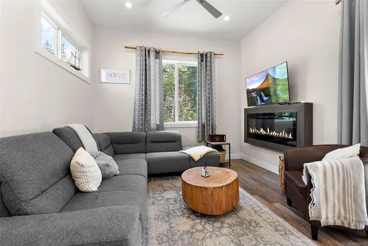 ‘The Cabin Collection’ at Woodland Shores. Lake life-perfected! Own your own cabin on Cowichan Lake and create the lifestyle you have always dreamed of for you and your family in this 943 sq ft home. The main level provides open living with dining and kitchen space featuring 10’ ceilings, electric fireplace and sliders that open up to the covered patio. There is a laundry closet, a 4pc BA and the primary bedroom. Upstairs is an open loft style room, could be the primary bedroom with its own 3pc bath. The covered patio and fire pit area look out to the forest with lake glimpses. Built in 2019 this cabin is covered by New Home Warranty, has very easy care landscaping and has all the amenities that Woodland Shores Cabin Collection offers: Club House, pools, hot tubs, Lake House and each cabin has an individually assigned moorage! Located 30 min drive West of Duncan and just a short drive or boat ride into the Town of Lake Cowichan for amenities!