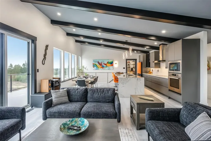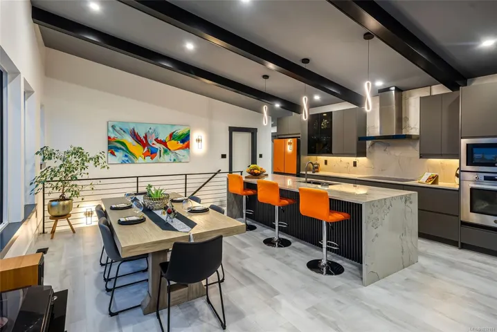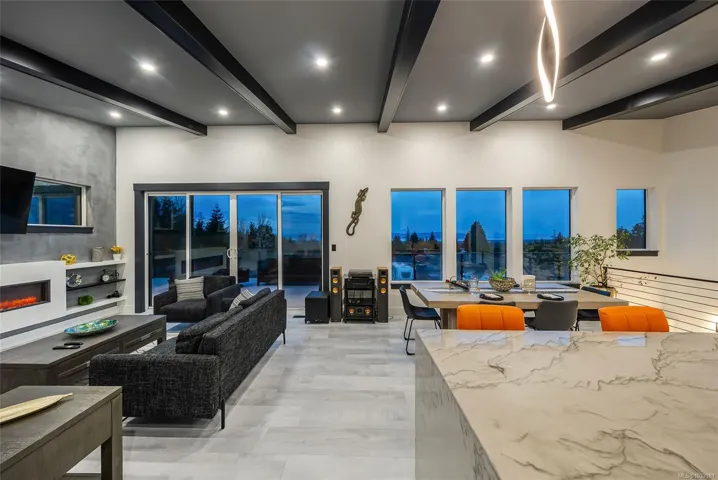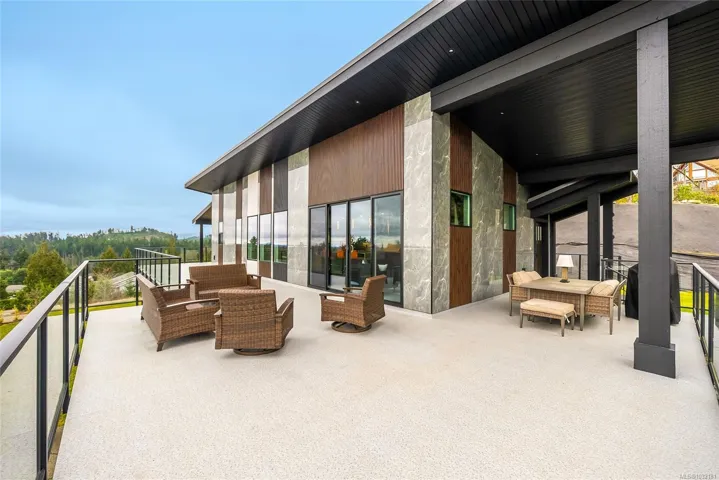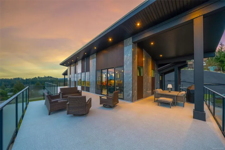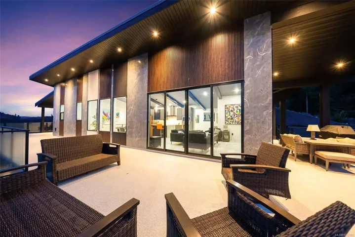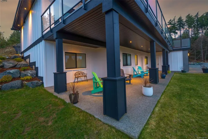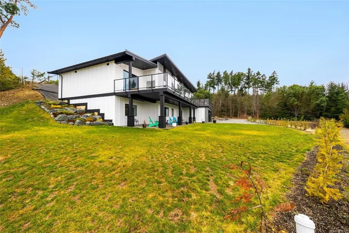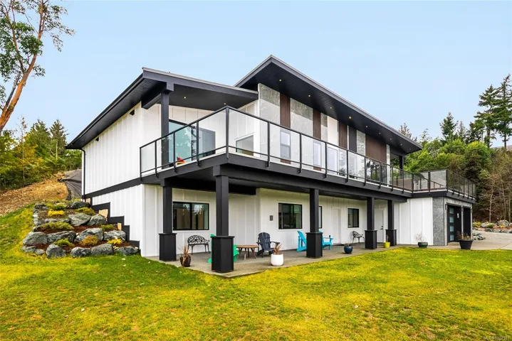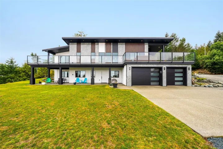 LQRV Oceanview Exec Home on 2.10 Acres! This stunning 4 Bed+Den|Office/4 Bath Contemporary Home offers breathtaking ocean/mountain views, bright interiors, high-end finishes, and fabulous outdoor spaces. The upper level hosts all main living areas, while the WO lower level incls a private Guest Suite. Ample parking and an energy efficient Step 4 energy rating. Main and lower-level parking, expansive deck enjoys sunny east/west exposure. Open-concept main living area has vaulted ceiling and wall of OS windows. Deluxe Island Kitchen features quartzite CTs, high-end appls, and Butler’s Pantry. Living Room has linear fireplace and deck access. Primary Suite sports WI closet and spa-like ensuite. 2nd Bedrm, Main Bath, and Den/Office complete the main level. Downstairs are 2 Bedrms (one with ensuite), 4-pc Bath, Laundry/Mudrm, Gym, 2-Bay Garage, and covered patio. NOTE: Photos of furnishings/interiors taken prior to Fall 2025, Current decor is different. Visit our website for more info.