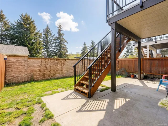 Built in 2017 with Freehold lot with NO Strata Fees, this charming single-family home in Foxwood Estates offers exceptional value for first-time buyers, families, or those looking to downsize. With 2,400 sq ft, this well-designed home features 3 bedrooms, 4 bathrooms, PLUS a versatile granny space with 1 bedroom and separate interior and exterior entry. The bright open-concept main floor includes a gas fireplace, quartz counters, on-demand hot water, air conditioning, and a heat pump for year-round comfort. Upstairs offers spacious bedrooms, including a generous primary suite with walk-in closet and ensuite. Enjoy the 24′ x 28′ fenced yard with patio and deck, perfect for kids and entertaining. The 14′ wide garage includes an EV charger plus 120 sq ft of storage. Located on a quiet street near Happy Valley School, parks, the Galloping Goose Trail, and amenities—this low-maintenance home offers freehold living at a townhome price.