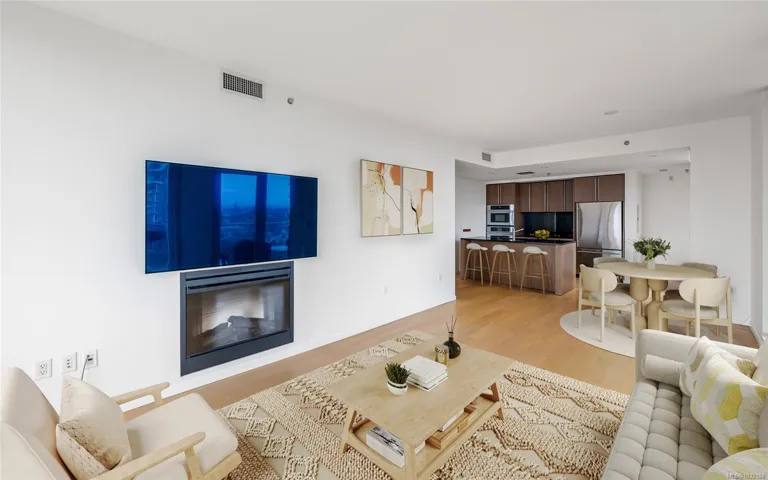 Luxury living at Bayview One. This bright 1,100+ sq ft condo features hardwood floors and floor-to-ceiling windows with eastern views over the Inner Harbour, from the Blue Bridge north up the inlet. The open floorplan offers great flow through the kitchen, dining and living areas. The kitchen includes a gas cooktop, granite countertops, high-end cabinetry and an island with seating, ideal for entertaining. Off the living room, the spacious balcony is a perfect spot for coffee at sunrise or watching all the marine activity. The large primary bedroom includes a 5-piece ensuite and generous closet space. A rare bonus: 2 secure parking stalls for extra value. The building welcomes you with a contemporary lobby and concierge. Amenities include a fitness centre, steam room, business centre, Hot tub, lounge/games room, an impressive outdoor BBQ area and more. Steps to the Songhees Walkway, Downtown, cafés, restaurants and transit. Pet and rental friendly, professionally managed building.