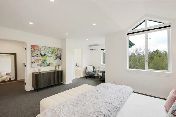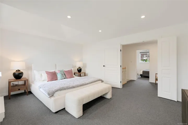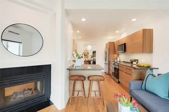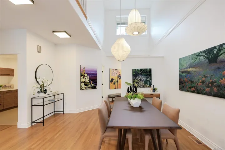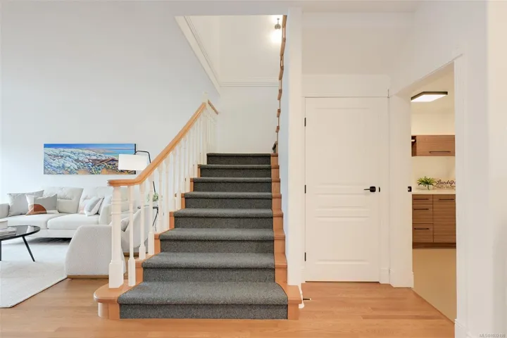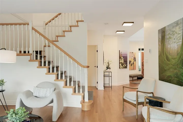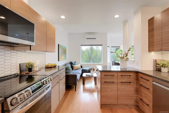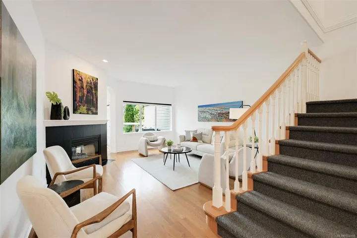Tucked beside Elk and Beaver Lake, this 3-level townhome offers serene surroundings and refined modern living. Southwest oversized windows and balcony with gas bbq overlook new CRD parkland — a true bird watcher’s paradise. Spanning 3,000 sqft. this 4 bedroom (one with no window), 4 bathroom home provides generous living space for all. Beautifully updated throughout: The kitchen showcases walnut cabinetry, quartz countertops, and new appliances. Refreshed laundry room and powder room, wool carpets, designer lighting, and new blackout and cellular blinds. Practical upgrades include a heat pump with A/C and an EV charger. A 5 minute walk to Saanich Commonwealth Pool and Rec Centre with immediate access to 10km+ of trails and nestled within a quiet, well-managed community — for those seeking peace and understated elegance, this is it.