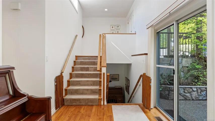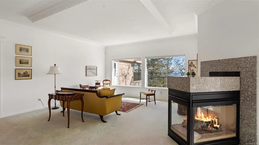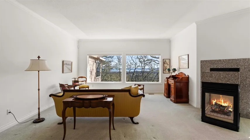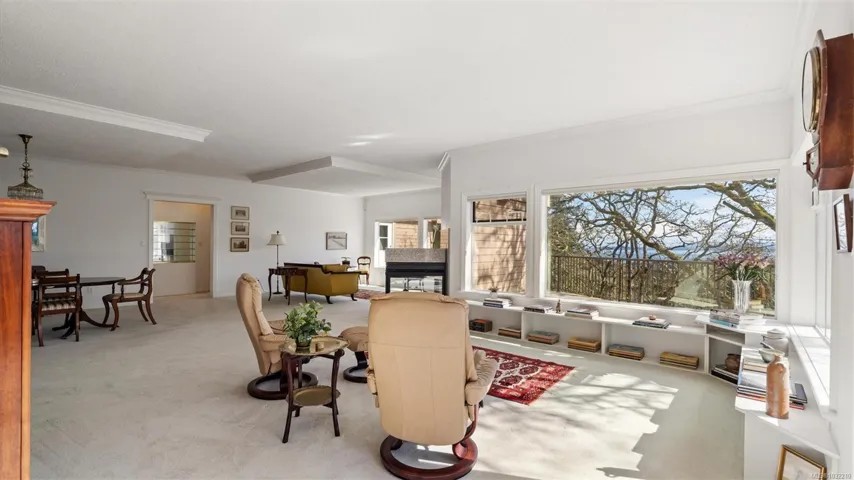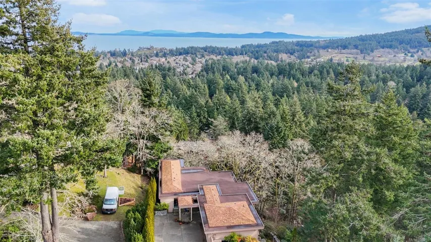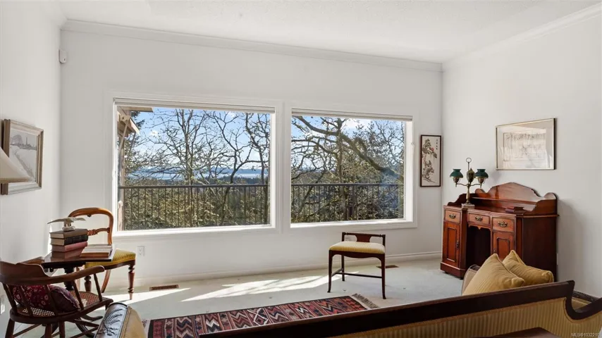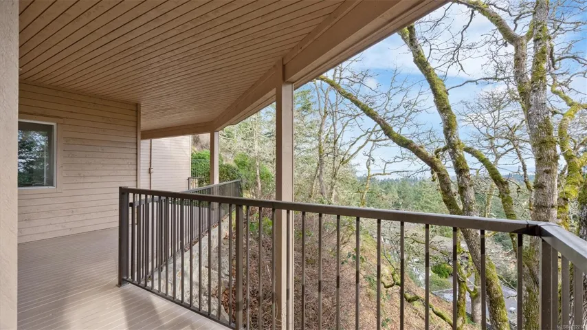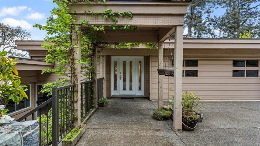 Located in a desirable upmarket neighbourhood, this elegant residence is perfectly positioned to capture stunning panoramic views of the ocean, the lush mature trees and Mt. Doug. The main house features a massive open-concept living and dining area where oversized windows frame the incredible scenery. The main level flows seamlessly onto a spectacular 642-square-foot balcony offering a private, elevated outlook. The primary bedroom is a true retreat with beautiful views, a generous walk-through wardrobe, and a private ensuite. Completing the main home are two additional bedrooms, a five-piece bath, and a powder room. As a fantastic addition, the property includes a bright and spacious one-bedroom suite with its own entrance, ideal for guests or family. This fully contained suite offers an open kitchen and living area, plus a large covered deck to enjoy the same peaceful scenery. This home provides a quiet lifestyle in a beautiful, landscaped setting.