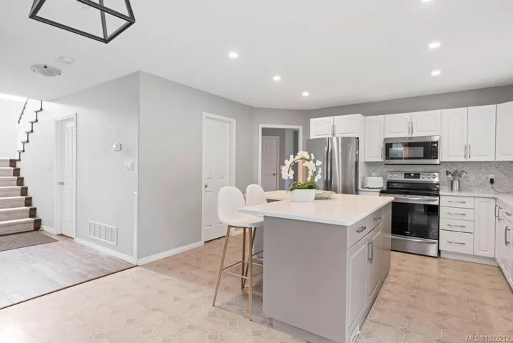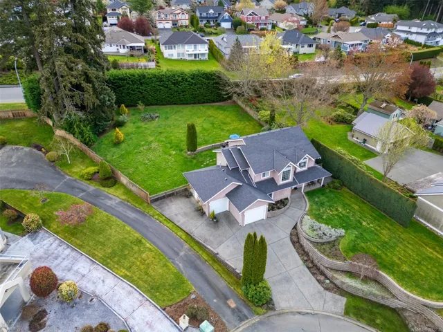 Well cared for 5 bed 3 bath family home on a half-acre tucked away at the end of a quiet cul-de-sac in Stonehouse Estates with sweeping views of Quamichan Lake and the Cowichan Valley. Quality craftsmanship and pride of ownership are very evident with many updates including newer roof, flooring, paint, and roller blinds. The main floor offers a combined living dining room with a double sided gas fireplace, the family room is adjacent to an open concept kitchen w/ stainless appliances, quartz countertops & direct access to the covered patio & private backyard. Easily work from home with an office/bedroom located next to the main entrance. Upstairs are 4 bedrooms including a large primary, ensuite with soaker tub & walk-in-closet. Double garage, work space, EV ready & RV/boat parking. Large back yard with plenty of room to kick a ball or throw a stick for the dog. Close to excellent schools, beaches, marina, trails, mountain biking, vineyards and shopping.