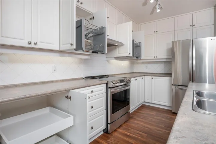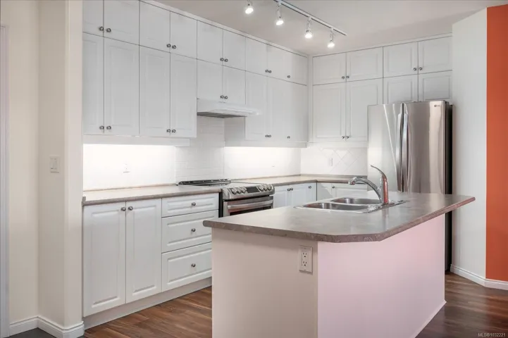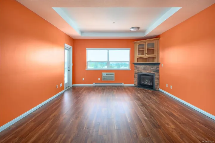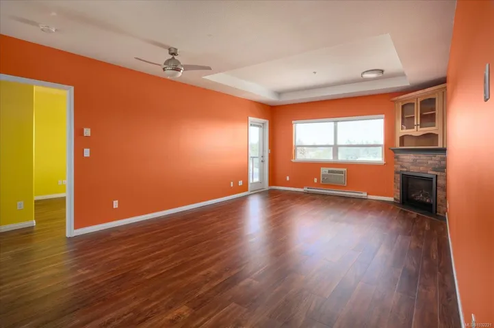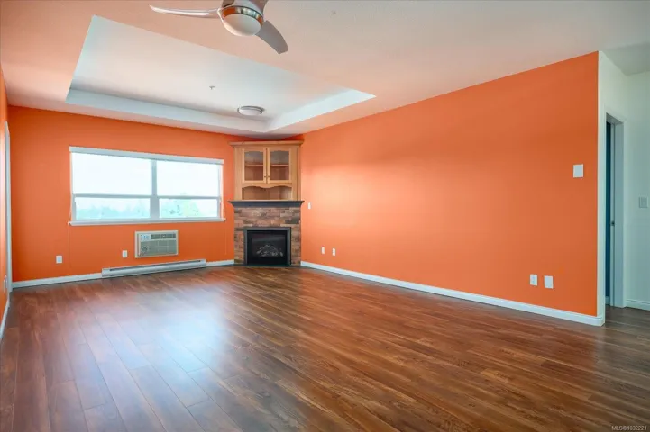 Step into easy living at The Fountains, where comfort, convenience, and beautiful mountain views come together. This top-floor condo offers over 1,168 sqft with 2 bedrooms and 2 bathrooms, filled with natural light from large windows throughout. The bright, inviting living space features a cozy gas fireplace and opens onto a private balcony—perfect for morning coffee and peaceful views. The home has been thoughtfully updated with newer appliances, stylish flooring, extended kitchen cabinetry, custom pull-out drawers, a Murphy bed, added closet shelving, and modern blinds. Enjoy year-round comfort with A/C and the added bonus of a separate storage room, secure underground parking, and a large locker conveniently located in front of your stall. The well-managed building offers an amenities room and outdoor BBQ patio. Ideally located in Central Nanaimo near the hospital, this is a fantastic opportunity for first-time buyers, investors, or those looking to downsize. Pets Welcome