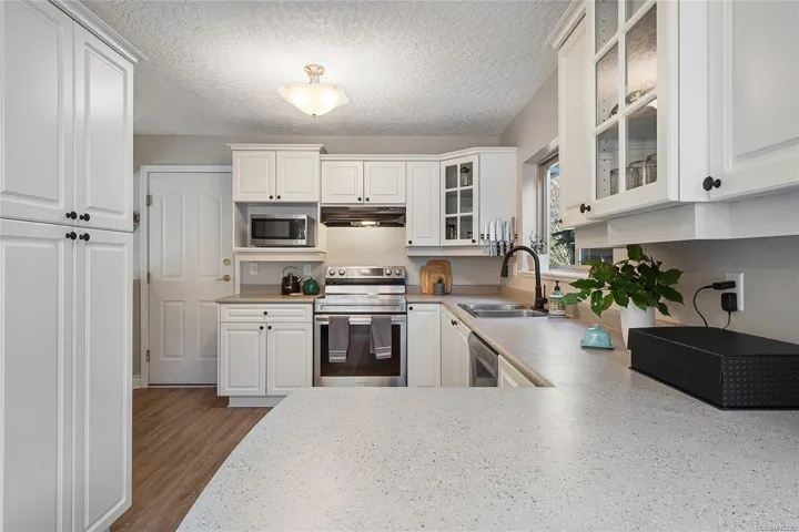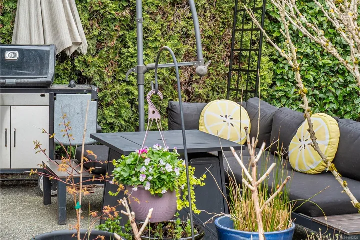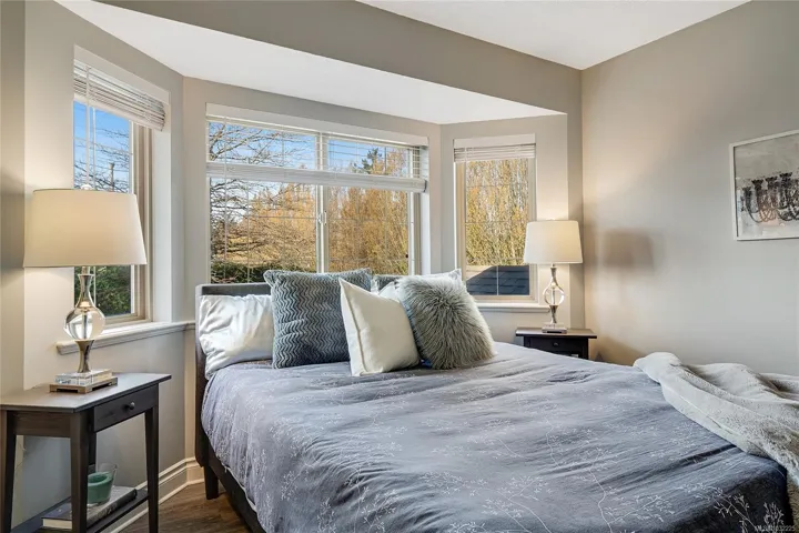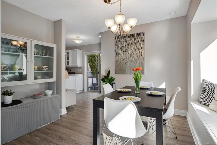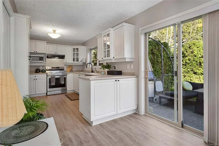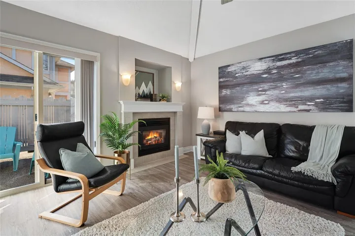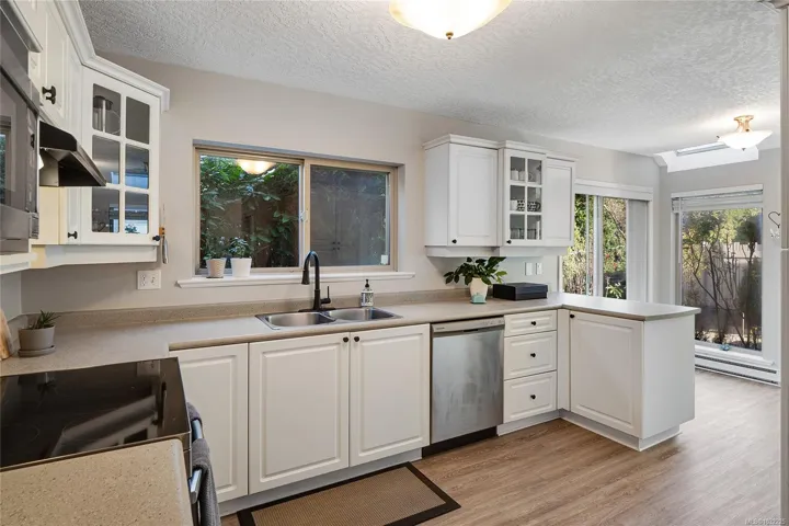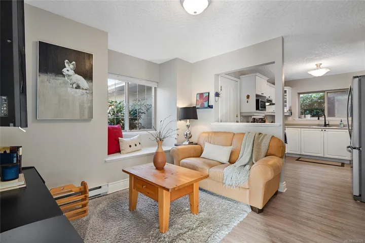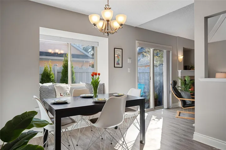 STAND ALONE TOWNHOUSE! Meticulously updated home where sophistication & elegance intertwine effortlessly. Bask in the sun-drenched allure which seamlessly blends modern amenities with cozy comfort, featuring a grand formal living/dining, family room and chef’s dream kitchen with newer appliances, gas option range & space to create! Primary retreat with ensuite on the upper level along with 2 more bedrooms including built-in Murphy Bed/Home Office. Amazing natural light from all sides & tasteful updates: new flooring, paint, appliances, blinds, plumbing fixtures & move-in ready! Marvel at the picturesque greenery, tranquil atmosphere that envelops this home. A serene escape with amazing sun exposures to enjoy alfresco dining w/ gas BBQ outlet & place to grow! Delightful boutique complex, this hidden gem promises a level of privacy/tranquility that is unparalleled. Positioned near the prestigious University Victoria & bustling Tuscany Village, this exclusive sanctuary is truly enchanting