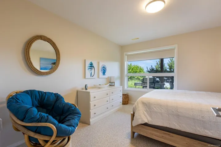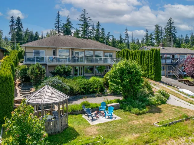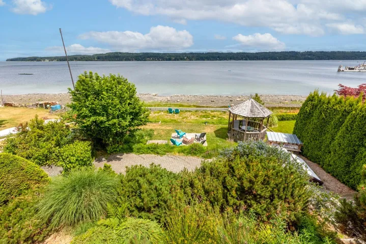 This stunning 5-bed, 3-bath home boasts over 3,600 sq ft of beautifully finished living space, thoughtfully designed to showcase sweeping ocean views from both levels. With walk-on beach access and a gently sloped driveway reaching the high tide line, launching a kayak or heading out for a shoreline stroll is effortless. From the moment you enter, the vistas steal the show. The bright, open-concept main floor features expansive windows, a propane fireplace, and easy flow to the oceanfront deck. The kitchen is built for entertaining, offering a large island, prep sink, raised eating bar, and convenient roll-out shelving. The private primary suite sits in the south wing, while two additional bedrooms and a full bath occupy the opposite side. The walk-out lower level adds two bedrooms, a full bath, office, & a generous rec room, ideal for guests, media, or hobbies. Outdoors, enjoy the beautifully landscaped yard with a gazebo, and unwind in the hot tub while soaking in the coastal views.