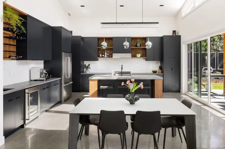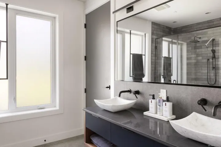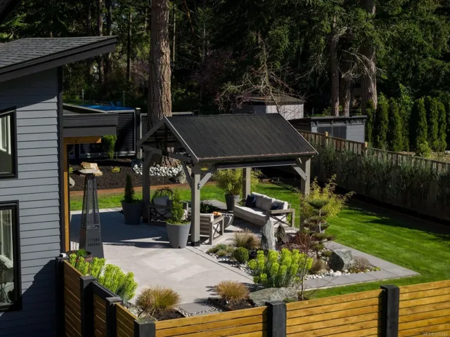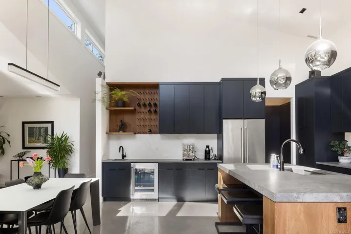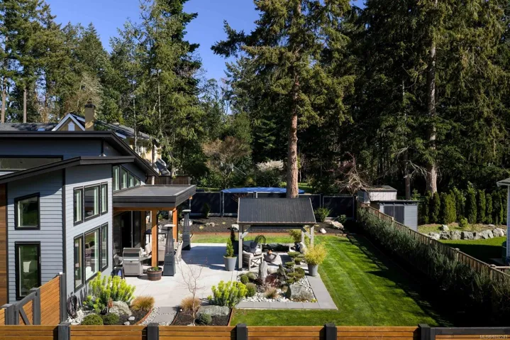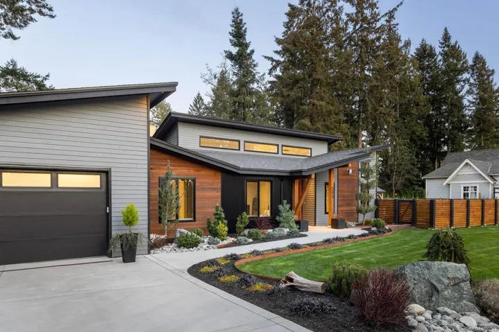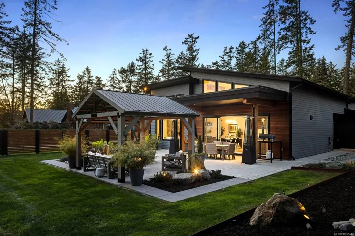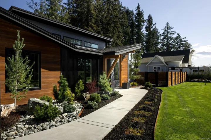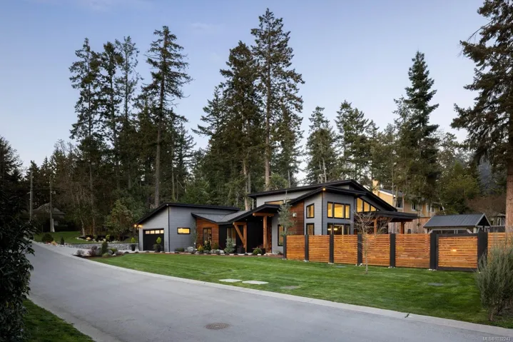 OH SUN 1-3PM – Set on a beautifully landscaped 0.42-acre property in sought-after Deep Cove, this exceptional 2022-built rancher by Philco Construction offers refined single-level living with a warm, modern aesthetic. Featuring 2,868 sq.ft., the home showcases soaring 9’–18’ ceilings, polished concrete floors with radiant in-floor heating, and expansive windows throughout. The open-concept living space is anchored by a stunning chef’s kitchen with custom millwork by Thomas Phillips, large island, and seamless flow to dining and living areas with a striking stone fireplace. Offering 4 bedrooms and 5 bathrooms, including three ensuites, plus a media/family room. A fully self-contained 1-bedroom suite with private entry, patio, and parking adds flexibility. Enjoy over 1,400 sq.ft. of patio space, hot tub, and private, fully fenced yard. Oversized double garage. Minutes to beaches, marinas, airport, ferries, and Sidney amenities.