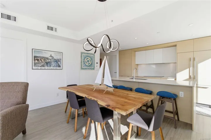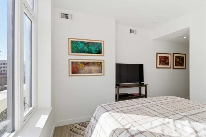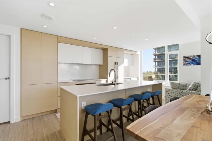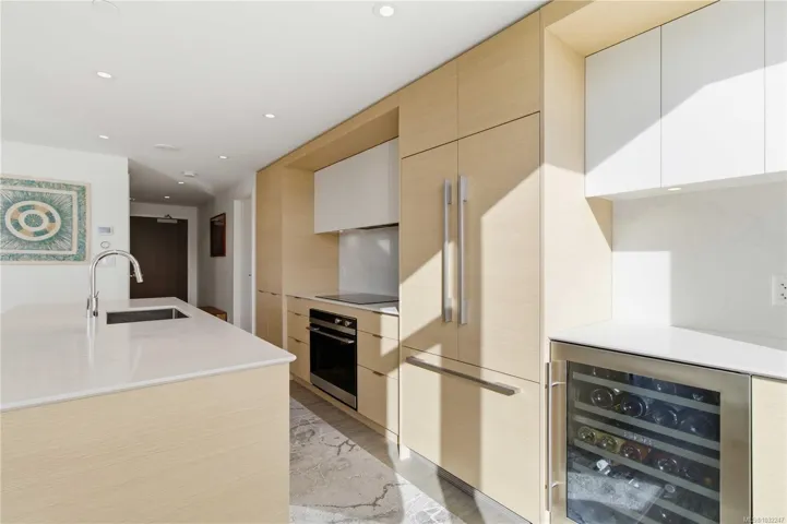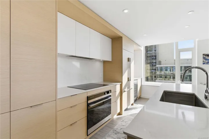 Experience contemporary luxury at Yates on Yates by Chard Developments. This sleek SW facing 2-bed, 2-bath residence blends modern design with timeless elegance. Floor-to-ceiling windows frame bright views & fill the home with natural light, while a 301 sq.ft. balcony offers a sunny space to relax. Automated Hunter Douglas blinds add a refined finishing touch. The spacious gourmet kitchen features premium integrated appliances, an induction cooktop, soft close cabinetry, quartz countertops & a custom wine fridge. Wide plank flooring & a light colour palette create a versatile setting. Climate-controlled heating & cooling keep the home comfortable year-round, complemented by heated ensuite floors. Rooftop amenities include BBQ areas/firepit/pet play zone/community garden & panoramic 360° views. Other highlights: secure bike storage/storage locker/pet wash station. With groceries, restaurants, theatres & transit steps away, this pet & rental friendly home offers vibrant urban living.