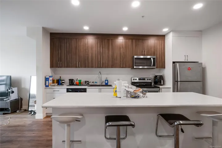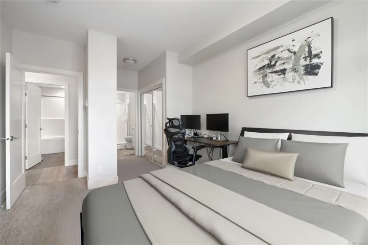 This exceptional condo in North Nanaimo is perfectly positioned to capture stunning ocean and mountain views while offering unparalleled walkability. Just a short stroll away, you’ll find over 200 amenities, including health and wellness clubs, pet services, restaurants, grocery stores, a boutique butcher and bakery, and Woodgrove Mall offering a variety of storefronts. This beautifully designed 2-bedroom, 2-bathroom unit boasts a spacious, modern layout with 9-foot ceilings, an open-concept floor plan, and sleek stainless-steel appliances. Thoughtfully crafted with the elegant Natural Woodland colour scheme, this north-facing residence exudes warmth and sophistication. The MET is a five-story building featuring underground parking and a top-floor common room with an expansive patio—perfect for taking in breathtaking ocean sunsets. All data and measurements are approximate and should be verified if important.