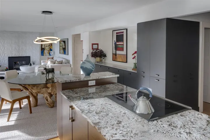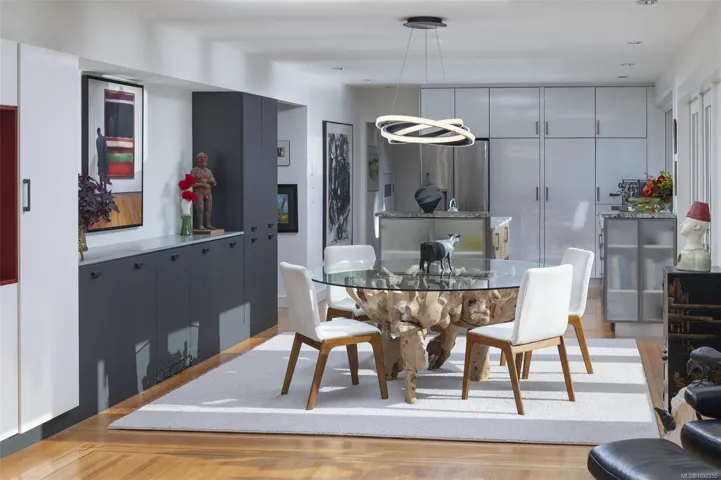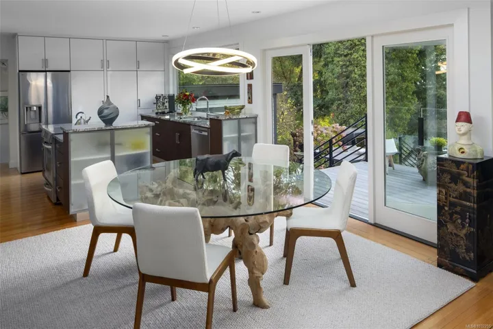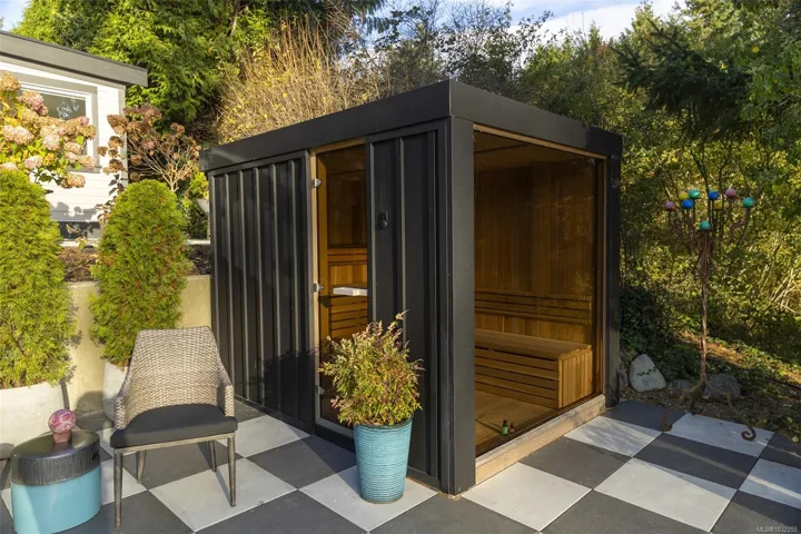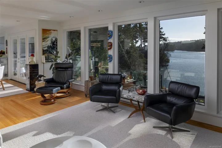 Upscale waterfront oasis! This delightful South-facing seaside home has been beautifully renovated & upgraded throughout, offering a bright open-concept design & wonderful views! Located on a private, tree-lined, cul-de-sac, the home offers a peaceful setting with access to a sheltered sandy beach. Three bedrooms are located on the main level, & the generous living & dining spaces are highlighted by oversized windows, feature FP & access through double French doors out to the new deck areas. The spacious kitchen includes generous working spaces, upscale appliances, lovely built-ins & custom cabinetry… Downstairs the expansive lower level offers a flexible layout ideal for guests – or as a private self-contained 2 bedroom suite with ocean views & access to a sunny patio. A self-contained studio/office looks out to the ocean, as does the new top-of-the-line seaside sauna. This is a rare & special home with a huge wow factor that must been seen to be truly appreciated!