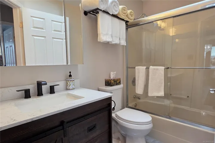 This one owner home was bought brand new by the current owners in 1992, and has been meticulously maintained since. The main level features a bright living room with bay windows allowing the bright morning sun, engineered hardwood floors and an adjoining dining room. The kitchen has been tastefully updated with newer cabinets, stainless steel appliances and tile backsplash. French doors off the breakfast nook open to a covered patio with gas fire table. The primary bedroom is one of 3 bedrooms on the main level, and has a spacious walk-in closet and 3-pce ensuite. Downstairs you find a large family room with cozy gas fireplace, a 4th bedroom, a full bathroom, and a den pre-plumbed and could all easily be transformed into a 1-bedroom suite. Out back has a manicured fully fenced yard and gardens, 2 sheds, greenhouse, and fruit trees/bushes. Add to the list, a new garage door & opener in the single garage, new hot water tank, RV parking and all new vinyl windows on the main level.