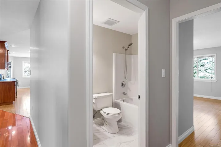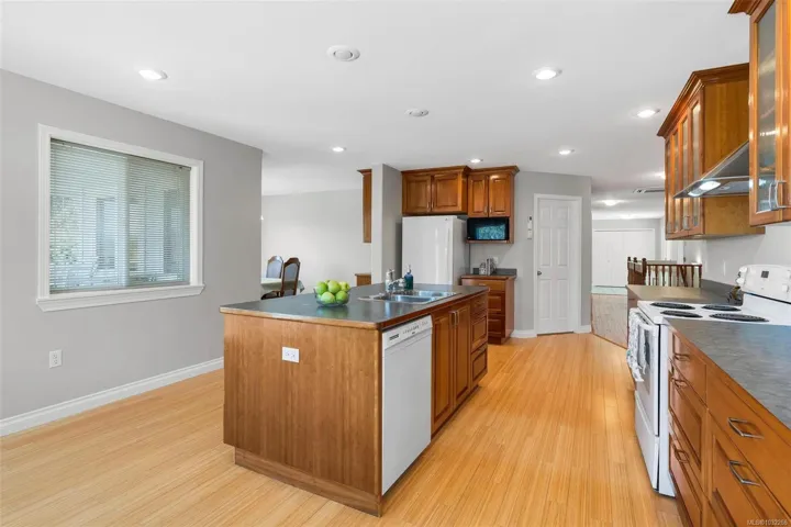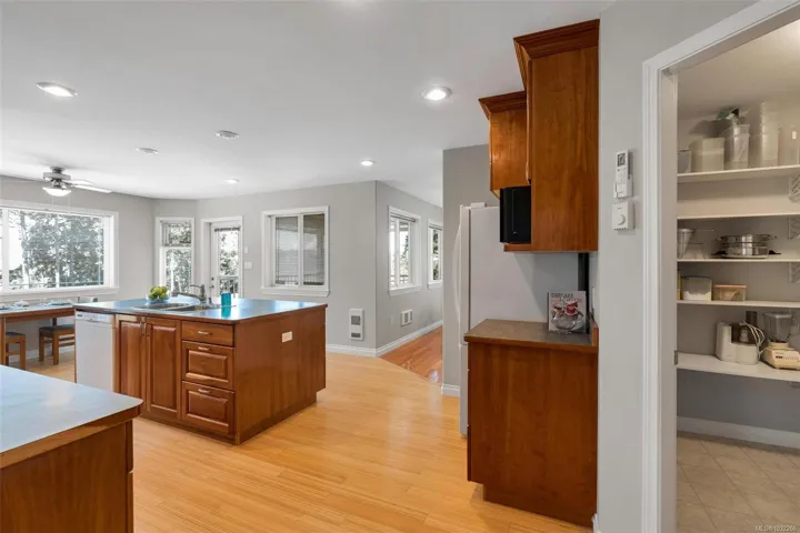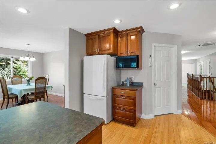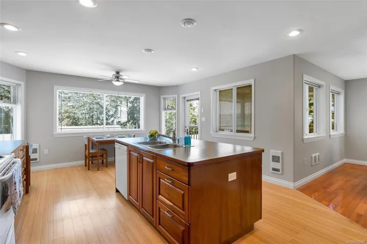 Welcome to this expansive 3,700 sq ft home, perfectly suited for multigenerational living or those seeking a mortgage helper. Located in the coveted Maple Bay area with the marina and beach just minutes away. The main level entry upper floor offers a freshly painted 3 bedrooms, 2 bathrooms, a formal dining room, and a bright family room with large southwest-facing windows and expansive mountain views. The kitchen features timeless real wood cabinetry and opens to a spacious deck, ideal for entertaining. Downstairs, the 2 bed, 2 bath in-law suite includes its own entrance and private balcony. Enjoy year-round comfort with a heat pump providing heating and air conditioning. An oversized double garage and backyard shed add functionality, while the low-maintenance concrete and gravel exterior offers easy upkeep. A rare opportunity for flexible, spacious living.