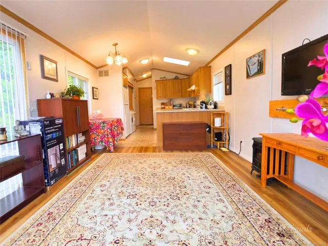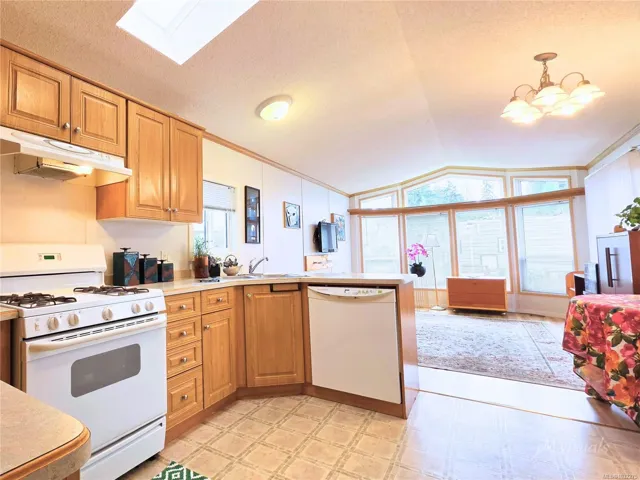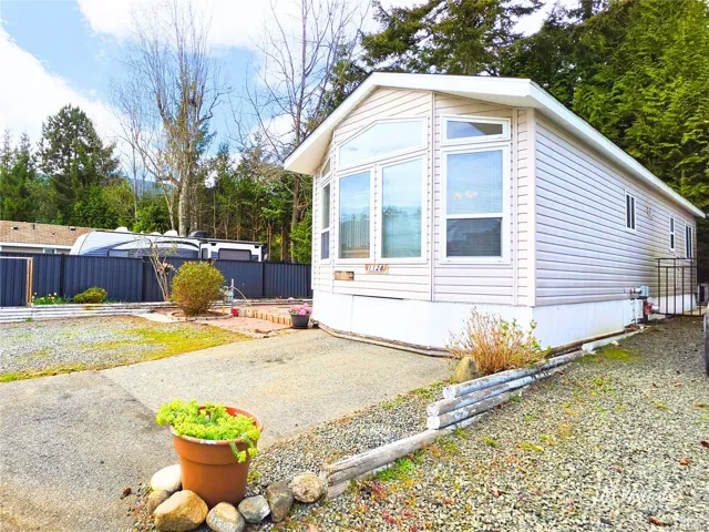 Welcome to 1128 Woss Lake Drive in Resort on the Lake, Nanaimo’s premier lakeside community on beautiful Westwood Lake. This bright, southeast facing 2004 Moduline Pacific Park Model enjoys warm morning sun and natural light into late afternoon. Inside, a cathedral style ceiling, eyebrow windows, and a kitchen skylight enhance the open layout. The kitchen features an NG stove, dishwasher, and fridge, w/ dining area nearby. An in-suite washer & dryer and NG furnace add comfort. The private rear bedroom includes a large closet w/built-in drawers, for practical, efficient storage, while the 4-piece bathroom includes a full tub/shower. Plus, onsite parking for 3. The strata fee covers high speed internet, cable, garbage, sewer, water, caretaker & amenities. Pets & families are welcome. Enjoy a lakeside clubhouse, heated pool, hot tub, fitness facilities, and direct access to Westwood Lake’s trails, swimming, and paddling—resort living close to shopping, dining, transit, and the waterfront.