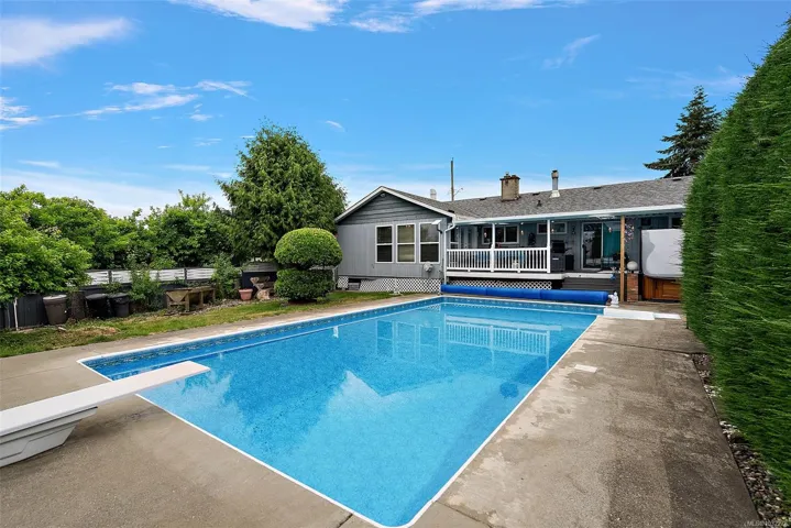 Don’t miss this delightful 4-bedroom, 2-bath ranch-style home offering 1,700 sq ft of comfortable living in the heart of Crofton. Make this property be your private outdoor oasis to enjoy summer fun in your in-ground heated swimming pool complete with a new 9 person hot tub, and low-maintenance, fully fenced yard. Whether you’re entertaining guests or enjoying a quiet afternoon, this backyard retreat is perfect. Bonuses include alley access, a garden shed, irrigation system, and plenty of room to relax poolside.The spacious, cozy interior has a warm and inviting layout featuring a formal living room with cozy gas fireplace .A separate dining area, bright updated kitchen,generously sized family room — ideal for gatherings or quiet evenings This home comes equipped with:energy-efficient heat pump, vinyl thermal windows, built-in vacuum system Nestled in a peaceful neighborhood, you’re just minutes from walking trails, and the seawalk. Crofton, BC – where lifestyle and location meet