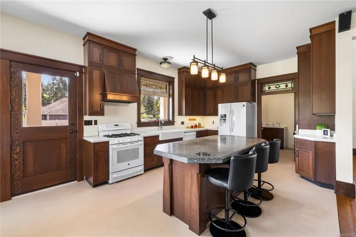 Welcome to a truly one-of-a-kind estate offering the perfect blend of style, space, and lifestyle. This stunning 3,700 sq ft Craftsman-style home is rich in character with exceptional custom craftmanship including fir flooring inlaid with walnut and slate tile. The wrap around veranda leads you to a large covered area overlooking the park like back yard.