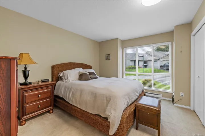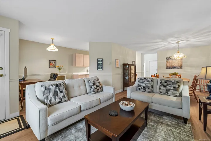Welcome to this two bedroom North Nanaimo patio home. The unit offers a large open concept living and dining room area with gas fireplace. The kitchen features three appliances and eating nook overlooking the rear yard. The patio with garden area is accessed from the living room. The primary bedroom boasts dual closets and a four piece ensuite. Completing the home are a second bedroom, three piece bathroom, large laundry room and skylit foyer with vaulted ceiling. There is plenty of parking with a single garage, extra wide driveway and RV parking for rent. Recent updates include new flooring and a newer hot water tank. The complex allows one small dog or cat. This is a fantastic location near amenities including shopping, restaurants and Woodgrove Centre. For more information see the 3D tour, video, and floor plan. All data and measurements are approximate and must be verified if fundamental.