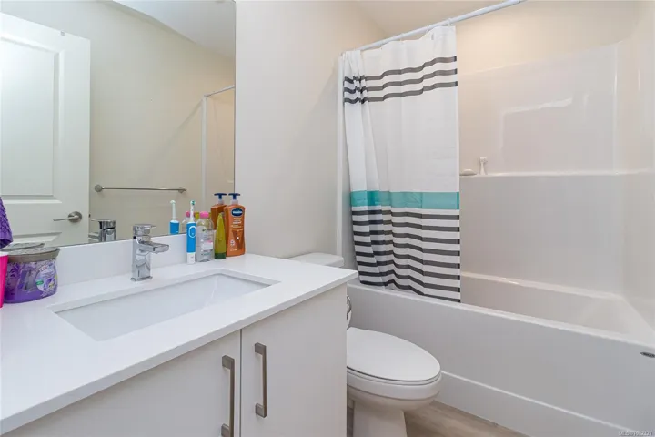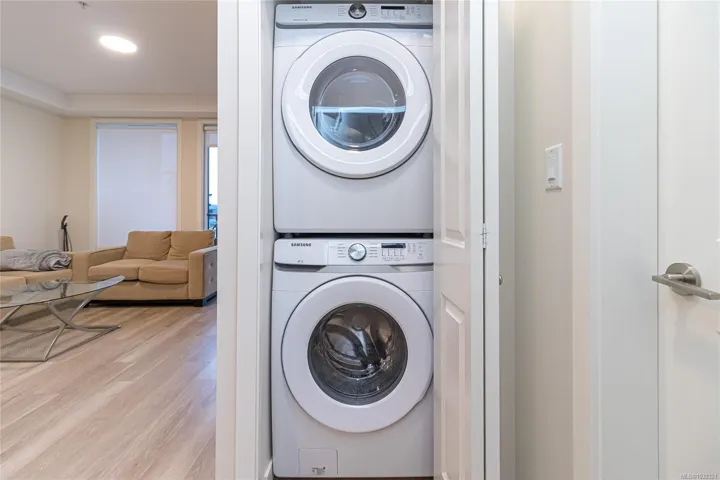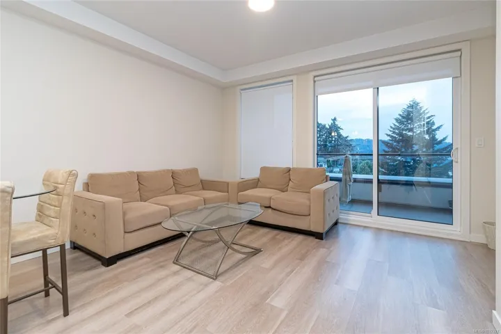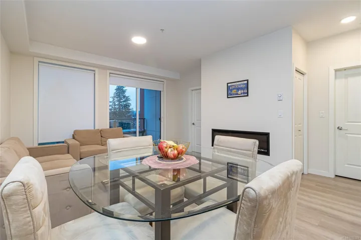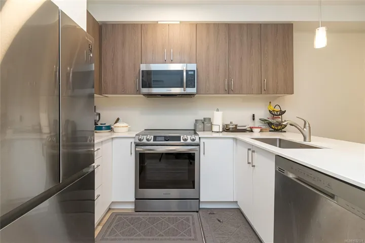 Welcome to Pacific Trilogy, a stylish contemporary development in the vibrant core of Langford. This south-facing 2-bedroom, 2-bathroom home offers 823 sq ft of thoughtfully designed living space, filled with natural light throughout. Enjoy sunny views over lower Langford from your covered balcony. The modern kitchen showcases elegant two-tone cabinetry, quartz countertops, stainless steel appliances, and a peninsula with bar seating that opens seamlessly to the bright living area, complete with an electric fireplace—perfect for relaxing or entertaining. Built in 2021 by the award-winning Viking Properties, the building features secure bike storage, allows unrestricted rentals, is pet-friendly, and includes the remainder of a 2-5-10 home warranty for peace of mind. Ideally located within walking distance to Langford’s many amenities—shopping, recreation, trails, and entertainment—this home offers both comfort and convenience. Includes one secure parking stall.