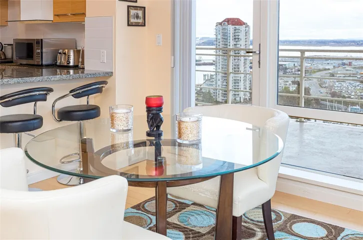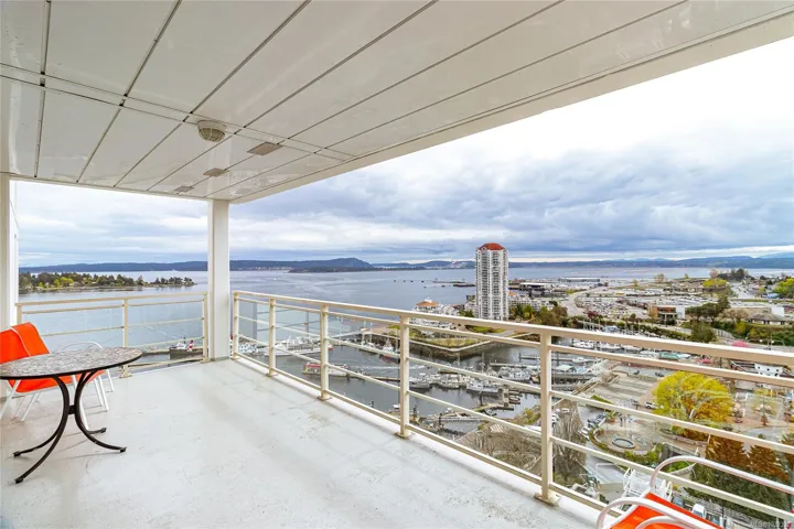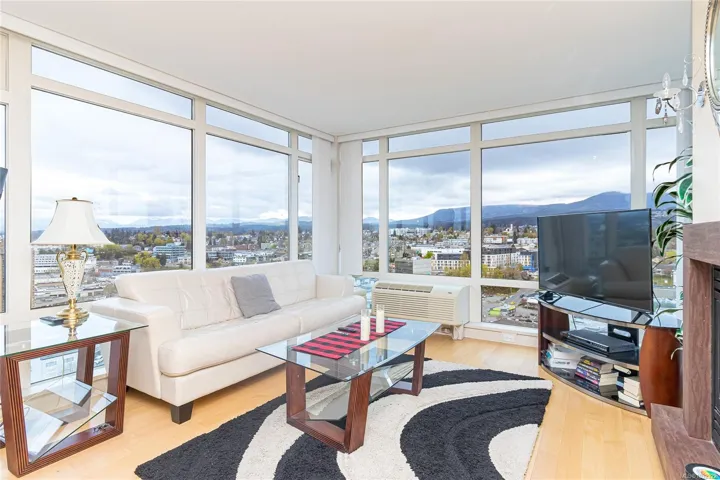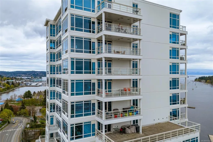 Experience elevated coastal living in this 14th-floor, 2-bedroom, 2-bathroom waterfront Pacifica condo in downtown Nanaimo. This bright, open-concept home features floor-to-ceiling windows that showcase ocean, city and mountain views. Step out onto the spacious balcony to take in the scenery—perfect for morning coffee or evening relaxation. The layout seamlessly blends living, dining, and kitchen spaces, creating an ideal setting for both everyday living and entertaining. Conveniently located just steps from all amenities, including shopping, dining, the seaplane terminal, and fast ferry access, this home offers the ultimate in urban waterfront lifestyle. Additional features include secure underground parking, a separate storage locker, in-unit laundry, plus this is a pet and rental friendly building—making it a fantastic option for homeowners and investors alike.