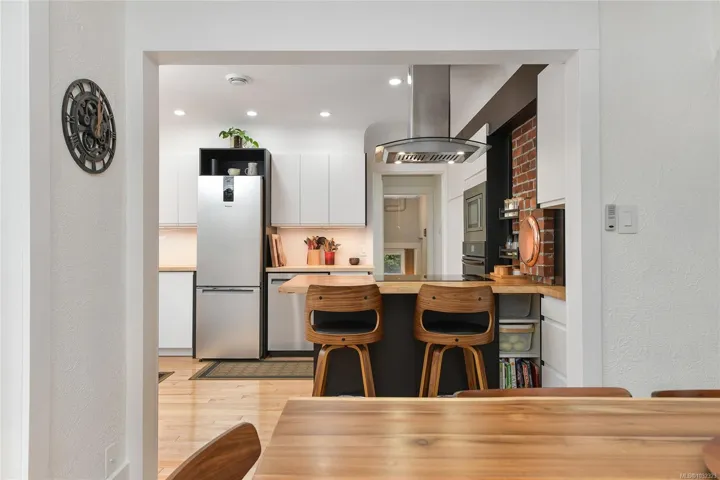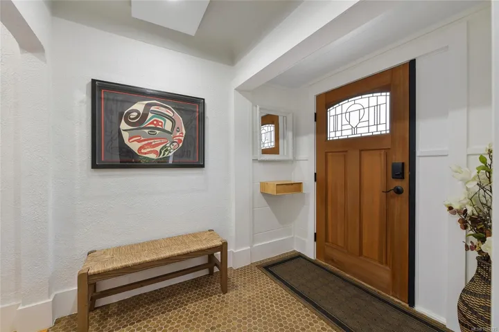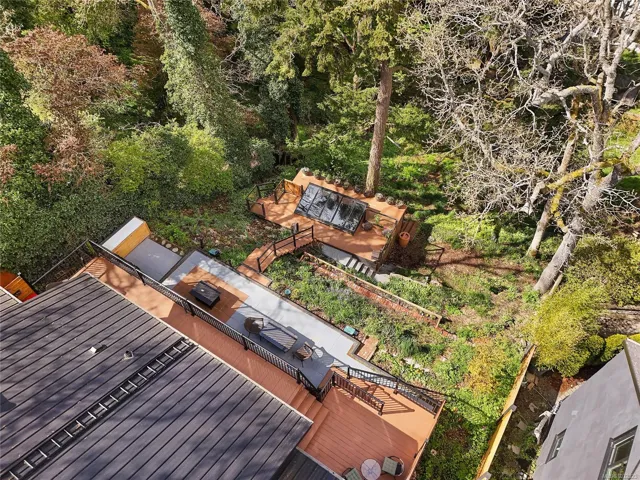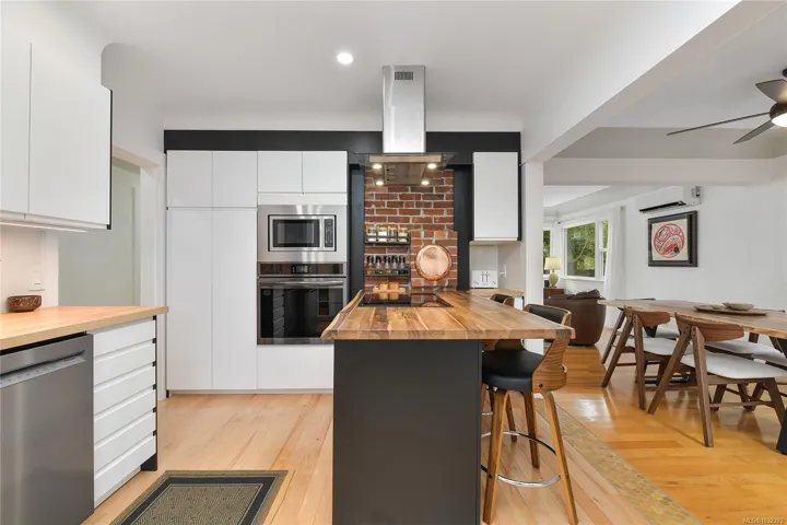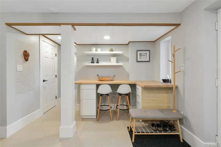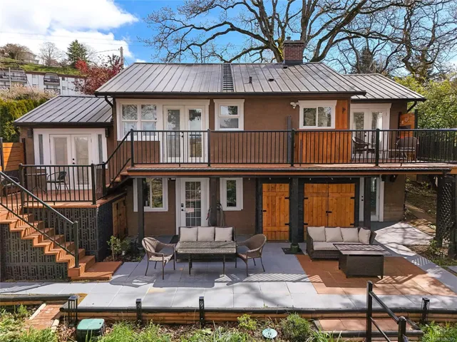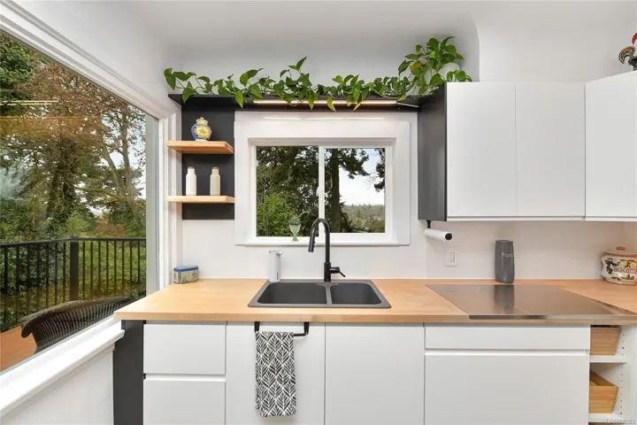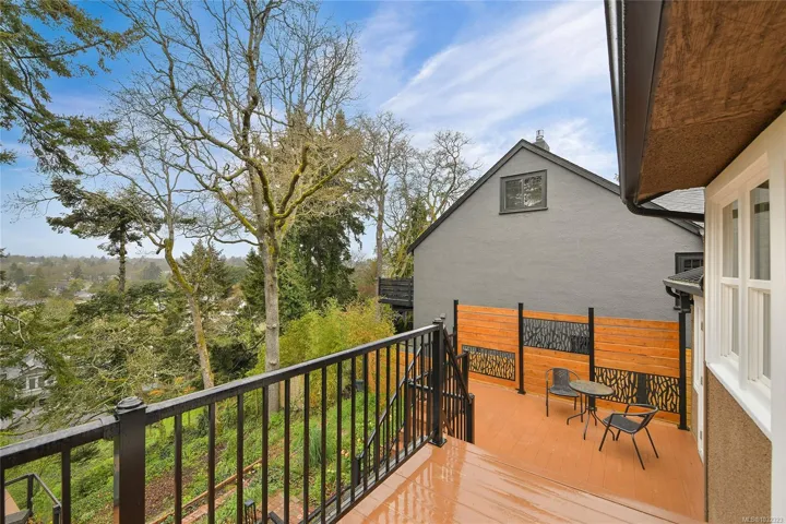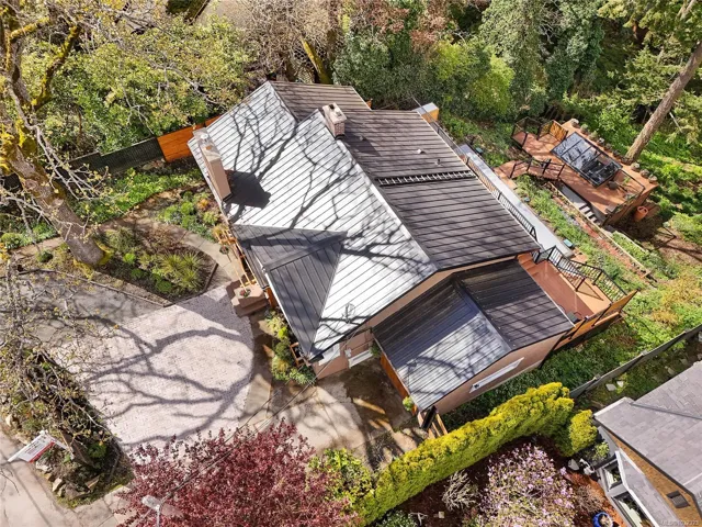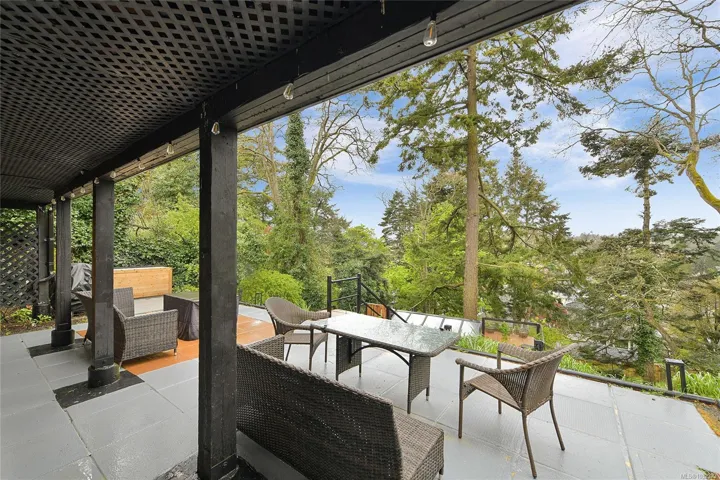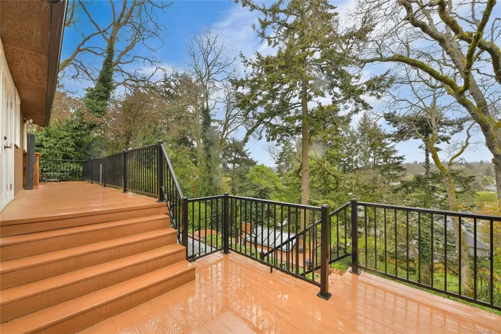 Welcome to a beautifully renovated home set on an expansive 65 × 200 ft lot overlooking an urban forest. This property blends modern comfort w/low-maintenance living, featuring a durable metal roof, updated systems, + thoughtful upgrades throughout. Inside, you’ll find a bright, inviting layout enhanced by smart-home technologies, including an efficient air exchanger, heat pump, permanent hot water tank + modern bidet toilets. Large windows frame spectacular sunsets & bring in natural light while offering a serene, tree-top outlook. The outdoor environment is impressive w/mature trees, lush greenery & abundant wildlife, including owls, robins, hummingbirds, & woodpeckers. A private setting rarely found so close to the city. The spacious lot provides endless possibilities for gardening, outdoor living, or expansion. Quality renovations, low-maintenance materials, smart features, & a stunning natural backdrop, this home offers a unique lifestyle in one of Victoria’s most desirable areas.