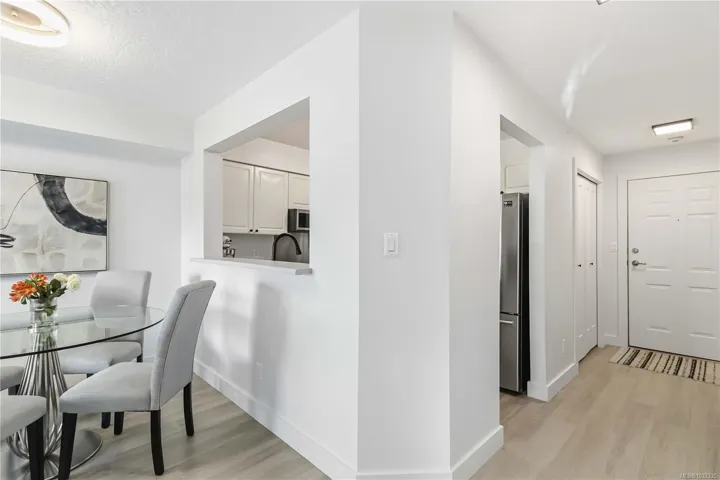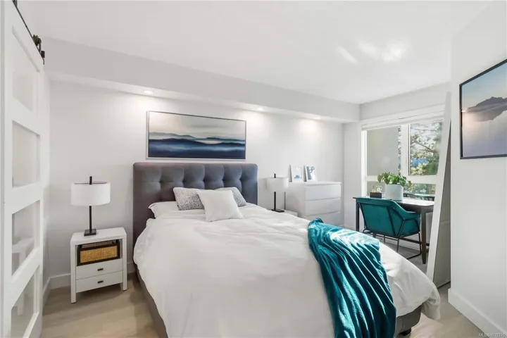 Welcome to The Lady James, a beautifully maintained community in the heart of Sidney by the Sea. Outside, enjoy the complex’s serene garden courtyard with reflection pond and fountain. Inside, thoughtful updates including new flooring, trim, paint, and modern lighting create a fresh, move-in-ready feel. This bright south-facing 2bd 2ba home offers large windows and a sunny balcony. The functional layout features a spacious primary bedroom with a walk-in closet and an ensuite with a bathtub, an additional powder room, and second bedroom. The current owners thoughtfully repositioned access to the bedroom to improve flow and functionality. Enjoy custom blinds, in-suite laundry, included parking (with addtl spots available to rent) and storage locker. This proactive, professionally managed strata has completed exterior remediation and maintains a healthy contingency fund. Located just steps from Sidney’s charming downtown and waterfront boardwalk, beaches and seaside views are moments away