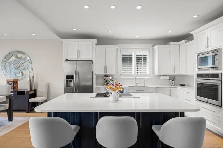 Experience unparalleled craftsmanship in this West Coast contemporary residence on Bear Mountain, ideally positioned at the end of a private cul-de-sac with sweeping views of the Jack Nicklaus–designed 18th fairway & green. Offering 3,381sqft, 3 beds + office & 4 baths, the home is filled with refined finishes: 12’ ceilings, oak flooring, custom millwork, quartz counters, heated tile, & solid fir accents. The gourmet kitchen opens to a light-filled great rm w/gas FP, while a custom wine cellar sets the stage for elegant entertaining. The primary suite impresses w/walk-in & spa-inspired ensuite; a 2nd primary suite, family rm, 2nd kitchen, & guest quarters are found on the lower level. Multiple decks & professionally landscaped gardens frame the stunning golf course backdrop. $150,000 renovation completed in the last couple of years. A $60K golf membership completes this rare offering designed for those seeking luxury & lifestyle.