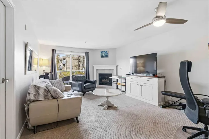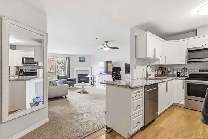 Welcome to this spacious and well-appointed 790sqft, 1 bedroom condo just minutes from Hillside Mall! Ideally located near Camosun College with direct bus routes to UVic and Downtown at your doorstep, this home is perfect for first-time buyers, students, or investors. The bright eat-in kitchen features new stainless steel appliances, while the open living and dining area is anchored by a cozy gas fireplace perfect for everyday comfort. Enjoy a generously sized bedroom with large windows and ample closet space, along with an updated bathroom showcasing a tiled tub surround and modern finishes. This pet-friendly (3 Cats or 3 Dogs or Combination of both) building offers in-suite laundry with added storage, plus secure underground parking and a storage locker. Walk to groceries, parks, and everyday amenities an unbeatable combination of convenience and value!
