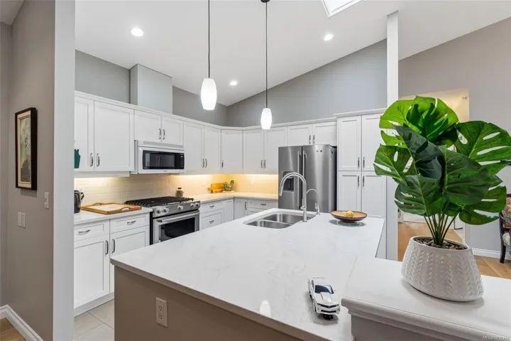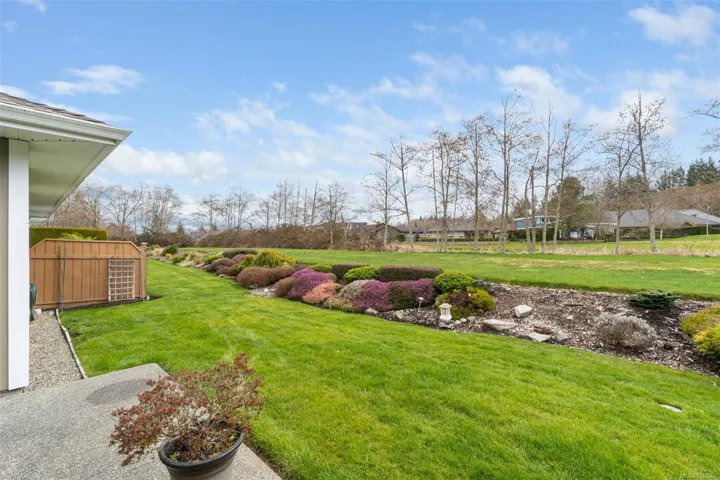 Welcome to Quail’s Landing, an exclusive golf course community set along the 17th fairway of Morningstar. This immaculate patio home offers sweeping, uninterrupted views and a refined, light-filled interior with soaring 12.6’ vaulted ceilings, skylight, and modern engineered hardwood flooring installed in 2024. The open concept design is both sophisticated and inviting, anchored by a gas fireplace and enhanced by seamless indoor-outdoor living. Step onto the south facing covered patio with gas hookup or unwind on the sunlit open patio, perfectly positioned to capture the tranquil golf course setting. Thoughtfully updated kitchen cabinets & quartz counters (2023), gas range (2023), whole home water filtration (2019), and energy efficient furnace and A/C (2018). Just minutes to French Creek Marina, Wembley Mall, and pristine beaches. Elevated Island living at its finest. Welcome to your perfect next adventure!
