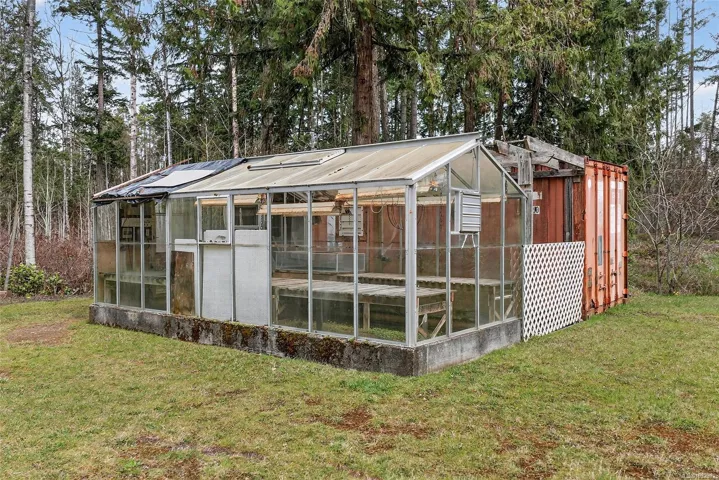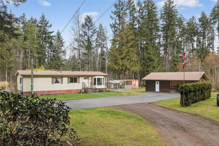 Discover 5 acres of beautifully landscaped privacy, just minutes from the heart of Parksville. A winding driveway leads through a treed sanctuary, offering a rare balance of rural peace and easy access to amenities. This meticulously maintained rancher-style home is a cozy retreat, featuring 2 bedrooms, 2 full baths, and a sun-drenched heated sunroom. Notable features include a 4-year-old roof, new electrical certification, and a heat pump with air conditioning for year-round comfort. The layout is designed for easy living, with skylights and a family room with a wood-burning fireplace. Outside, the property is a true hobbyist’s dream. The separate shop features a heated office on one side and a large garage on the other. The grounds are fully equipped with a greenhouse, irrigated garden beds, and a sea can for extra storage. Fed by a reliable drilled well, this quiet estate offers the perfect canvas for those wanting a lifestyle property that is functional and ready to enjoy.