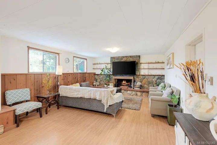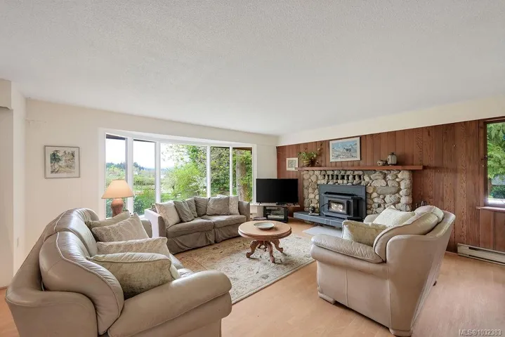 Fabulous West Coast family home with over 4,000 sq ft of flexibility on a private, level half-acre along a quiet, no-thru road in North Saanich. Backing onto the ALR with peaceful pastoral vistas and stunning west-facing sunsets. Hand-built in 1978 with cedar siding, knotty post, rock influences, and solid wood double entry doors. A split-level entrance opens to a bright main floor with kitchen, dining, and living areas anchored by a wood-burning fireplace. Grand tiered balcony for barbecues and container gardening. Three main-floor bedrooms including primary with ensuite. Lower level lives as full home or configures for generational living with one or two additional self-contained living areas*, a second fireplace, and private patio access. Fruit trees, raised vegetable beds, no-mow native plant front yard. Vaulted double garage currently used as storage and a potter’s studio. New roof (2024). Room for RV or boat. Minutes to Airport, ferries, beaches.