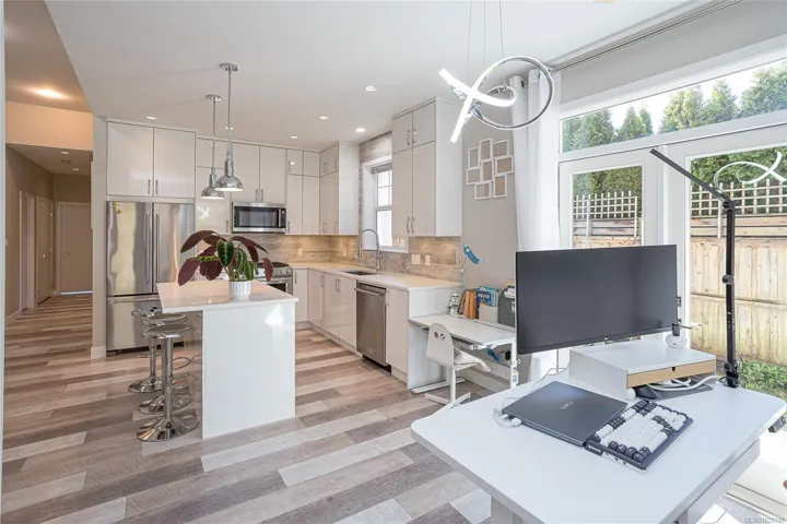 Explore the Rare Find Rancher nestled at the end of quiet cut-de-sac in Florence lake neighbourhood! This immaculately maintained home backs on to exceptional privacy yard fully fenced with greenery and tranquility. Large living room and kitchen with thoughtfully designed open concept space oversees the backyard oasis all day long. Provided 11′ ceilings and expansive windows, the entire one level home soaks in natural lights from dawn to dusk. The elegant kitchen features quartz counters, SS appliances, gas range and dining area right next to it. Upgraded flooring for the 3 bedrooms reflects exquisite and care. Heated tile floors in bathrooms warmth and comfy. Besides the surrounded nature, the home itself is also energy green with energy efficient heat pump for heating and cooling, On Demand hot water with natural gas, as well as EV charger with 220 V power in the double garage. Easy access to all amenities in life. Welcome to Randall and make this retreat yours!