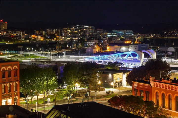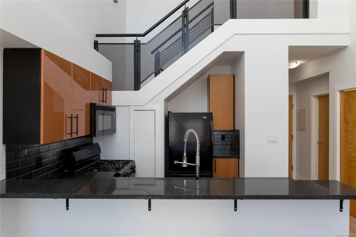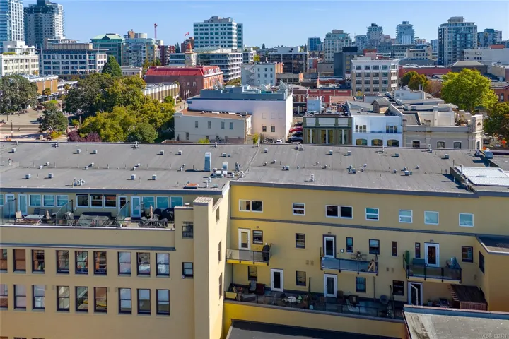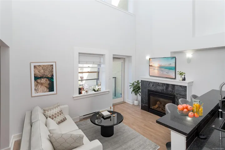 Where downtown vibes meet sophisticated living & heritage charm meets modern convenience! Live, Work, Play at “THE VOGUE” This 2006 heritage conversion set in the heart of Victoria’s historic Old Town truly has it all.2 bd, 2 bth, 2 level penthouse loft creates one-of-a-kind living experience at this historic, charming location.Main living is open concept with impressive 21 ft ceilings, lovely living space with cozy gas F/P & access to spacious deck with gas BBQ hook up & views of Lo Jo store fronts & Johnson St Bridge, perfect for entertaining!The stylish kit features lots of cupboard space, stone c/tops, gas range & secret pantry! Laundry on this level with 4 pce bth, cheater to 2nd bd that can be open & be part of the L/R or install privacy doors.The upper level offers primary bd with 3 pce bth & views over Old Victoria & Lo Jo store fronts.Located with unbeatable access to restaurants, Chinatown, Fan Tan Alley, Market Square, shopping, theatre. Enjoy a superb walkable lifestyle!