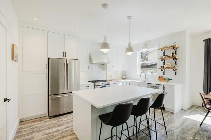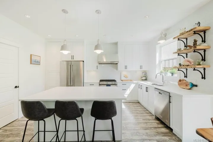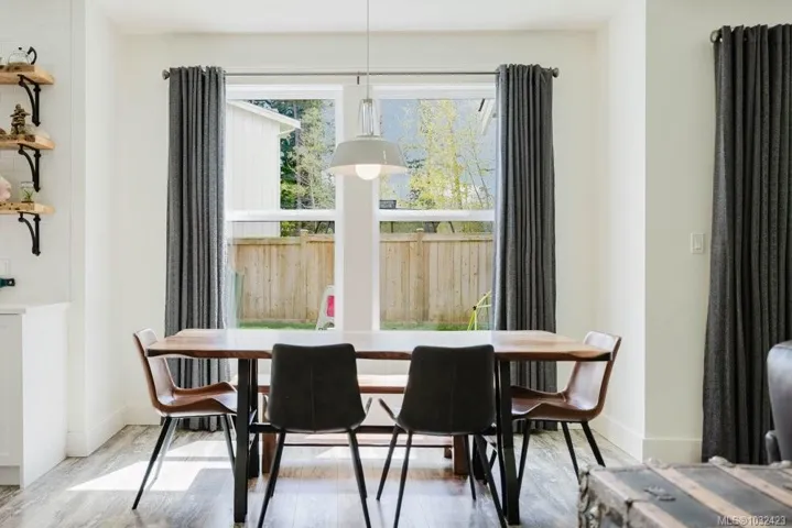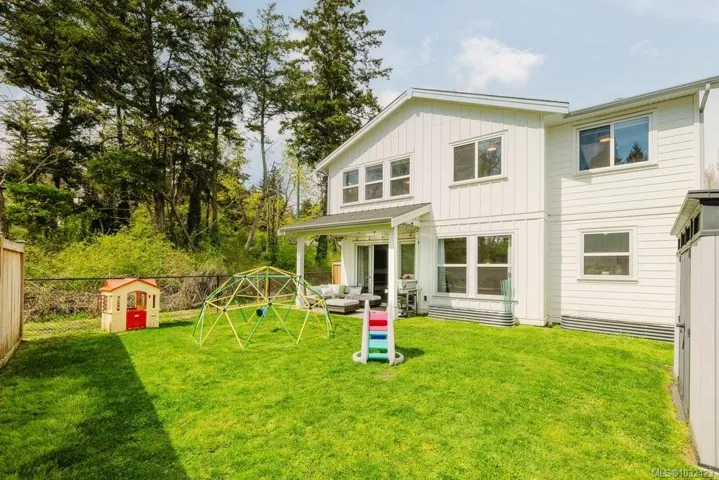 Welcome to 30 Jedburgh Road, a modern family home with no strata fees. This 4 bed plus den (or 5th bedroom), 4 bath home offers a spacious and functional floor plan with all the features. The main floor showcases a bright open-concept kitchen, living, and dining area, complete with a potential office and laundry room. Elegant French door patio doors create a seamless transition to the covered rear patio, ideal for relaxing while the kids and pup play in the large, fully fenced yard. Upstairs offers three large bedrooms and two bathrooms, including a primary retreat with a walk-in closet and a spa-inspired ensuite with double sinks. Designed for flexibility, the above-garage suite provides excellent potential for extended family or rental income with both interior and exterior access. Additional features include A/C, EV plug in the garage, metal roof detail and solar plumbed. Ideally located near CFB Esquimalt, major highways, and the E&N Trail for easy commuting and recreation.
