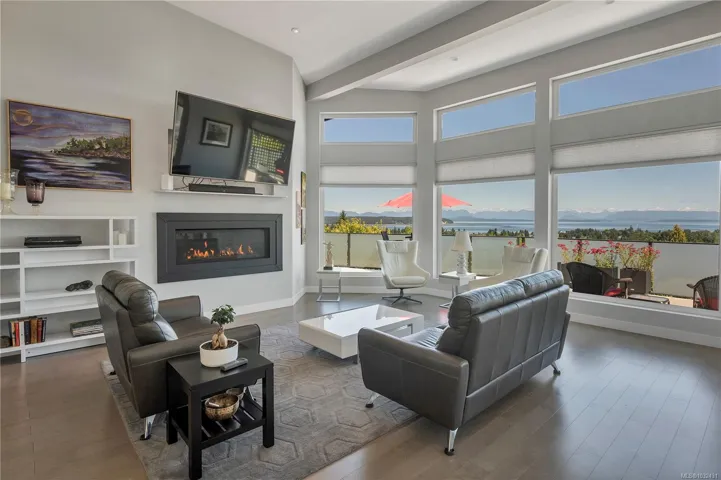 Prepare to be captivated by this exceptional executive home. A serene Zen garden leads to the covered entry, opening to a light-filled layout with floor-to-ceiling windows framing panoramic ocean views. Ideal for entertaining, the home features a stunning kitchen with an expansive island, grand piano lounge, vaulted living room with oversized gas fireplace, and a generous ocean view deck. The main floor primary suite offers deck access, a walk-in closet, spa like shower, and a soaker tub. Downstairs offers 9’ ceilings, a cozy library, sprawling rec room, 2 bedrooms, and roughed-in plumbing for a bar or guest suite and walks out to an expansive patio. A framed and wired elevator shaft adds future flexibility. Built with ICF walls and in-floor radiant heat, this home offers timeless design, efficiency, and enduring quality.