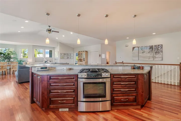 Welcome to Sahara Heights, where mountain views, stunning sunsets, and a walkable location come together in a home that makes daily life feel easier. With over 4,000 sqft of meticulously maintained living space, this property offers room to gather, unwind, and grow. Vaulted ceilings and a bright open-concept living and dining area create an inviting heart of the home, anchored by a gourmet kitchen with a large island, gas range, walk-in pantry, and direct access to the southwest-facing deck for morning coffee or sunset dinners. The main level includes two bedrooms with ensuites and heated floors, a den, and dedicated laundry. Downstairs adds flexibility with two more bedrooms, a rec room, cold room or wine cellar, full bathroom, and in-law suite potential. Outside, enjoy a fenced landscaped yard, double garage, RV or boat carport, and laneway access, all just minutes from schools, Echo Pool, and hockey nights at the Multiplex. Reach out any time to arrange your private viewing.