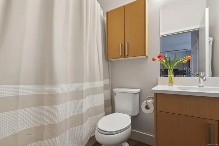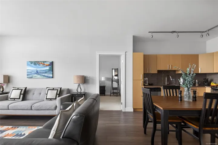 Welcome to this bright and spacious 2-bedroom, 2-bathroom home featuring an open-concept layout and a private balcony off the living room. Enjoy eastern exposure that fills the living area and primary bedroom with natural light, along with impressive 10-foot vaulted ceilings in the living room that enhance the sense of space. The primary suite offers a walk-in closet and a 3-piece ensuite. Thoughtfully finished with high-quality materials, modern appliances, and stylish details throughout. Ideally located near nature, schools, shopping, and dining, with easy access to the Galloping Goose Trail—linking to the Lochside Regional Trail and E&N Rail Trail—for cycling to downtown Victoria, Sidney or Sooke Potholes. Secure underground parking included.