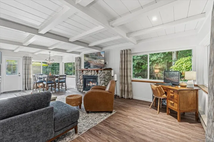 Nestled in one of Qualicum Beach’s most coveted settings, this property offers a rare blend of natural beauty, privacy, and walkable convenience. Backing onto the heritage forest along Beach Creek, it’s a true sanctuary. The main home is stunning, with 2 bedrooms plus a versatile loft. A beautifully appointed kitchen and inviting living space create a seamless connection to the surrounding forest, with every room designed to capture the peaceful setting. Step outside to a spacious deck perfect for relaxing or entertaining. The detached garage offers flexible space for your lifestyle and comes with its own deck overlooking Beach Creek. Adding exceptional value is the fully self-contained 1-bedroom cottage, ideal for extended family or as an income-generating mortgage helper. Both the main home and cottage are serviced with gas.