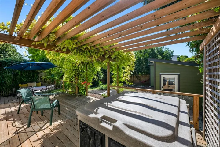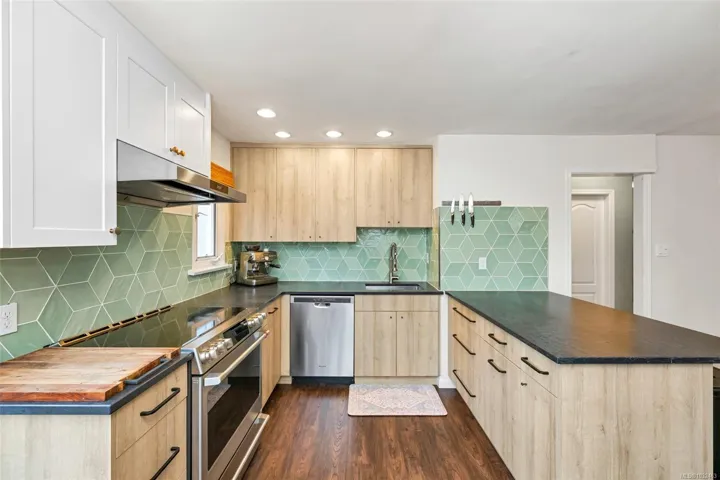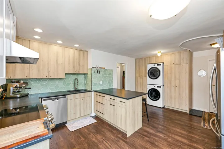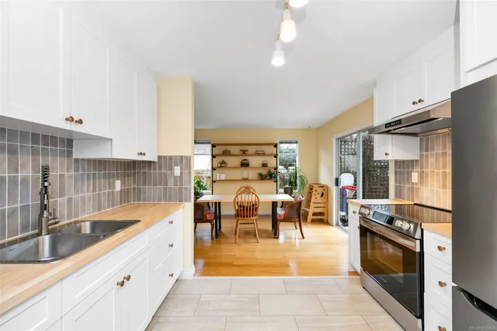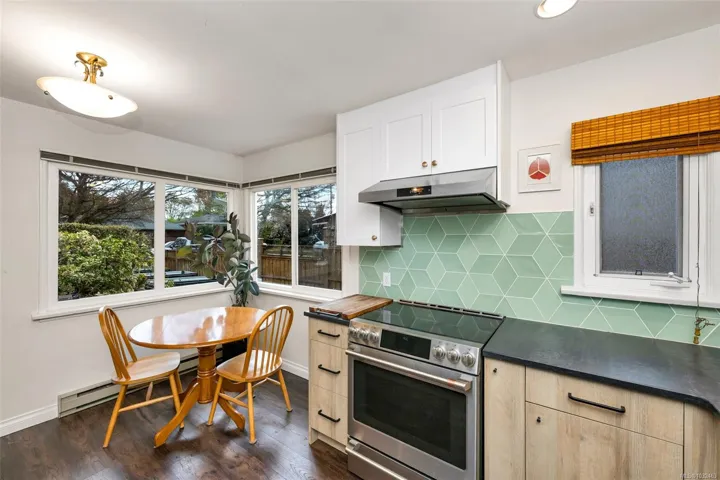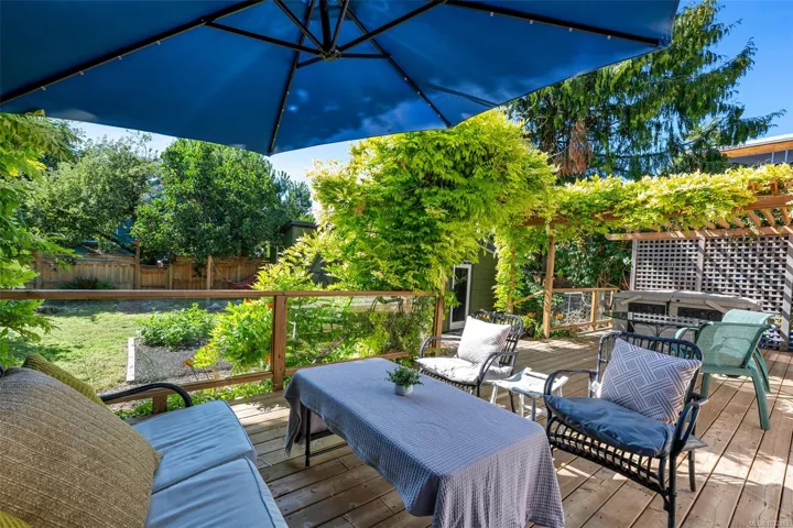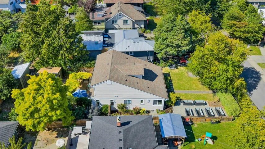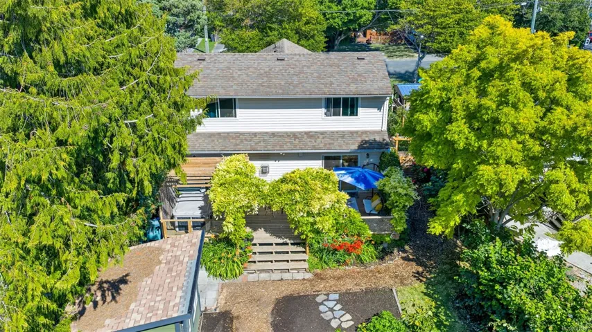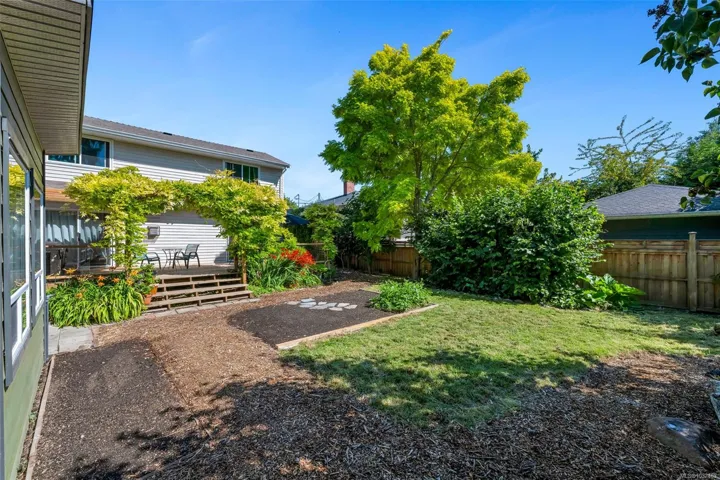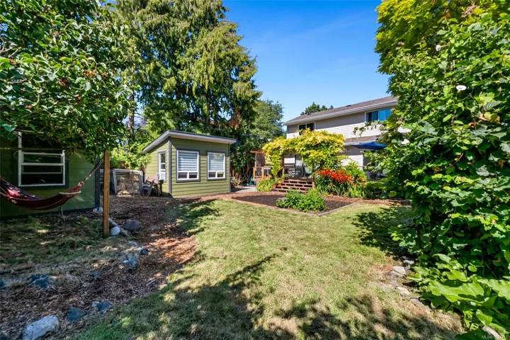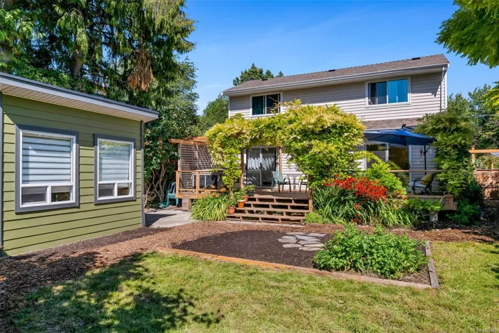 Bright and Cheerful Family Home in the heart of Oaklands. You’re greeted with a calm, uplifting feeling the moment you arrive at this sun-filled property. This home offers a warm, welcoming atmosphere with four bedrooms (2 up, 2 down), 21/2 baths, a family room, living room, kitchen and flex room with adjoining kitchenette. The comfortable family room with a gas fireplace opens to a private west-facing deck overlooking a lush backyard retreat featuring edible plantings—raspberries, and apple —and plenty of room for kids & pets to roam. Upgrades include all new bathrooms, kitchen and kitchenette, separate gym or studio, work shed, fence, deck and crawl space & attic insulation. The home rests on a quiet, community-minded street just steps from Haultain Village, Oaklands Elementary, 2 parks down the street, and bike route. Easy-care and exceptionally maintained, this cherished home has long offered a sense of retreat from the everyday and is ready for you & your family