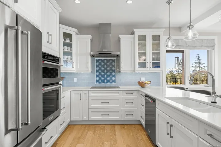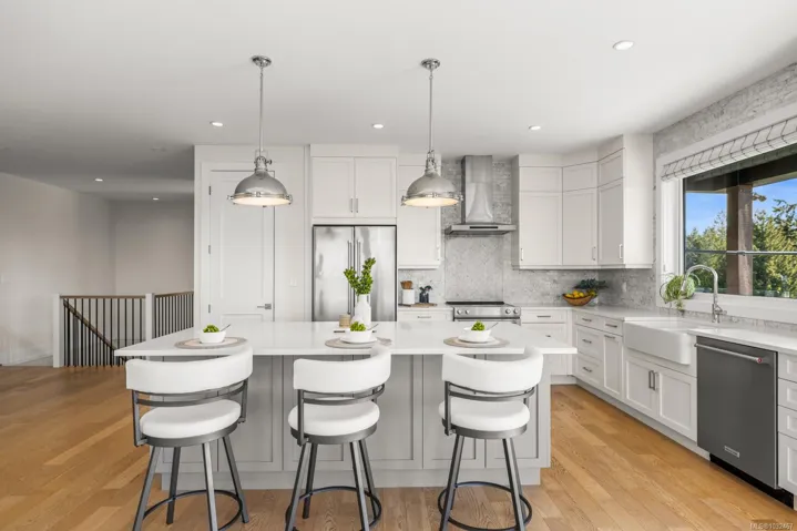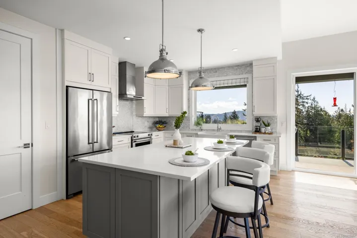 Welcome to 7235 Spar Tree Way, a stunning custom built residence with over 4,300 square feet of living space across two expansive levels. The main level features soaring 9 foot ceilings, wide plank oak flooring, & an open concept layout. The chef inspired kitchen is complete with custom cabinetry, quartz countertops, a marble backsplash, oversized island, & high end stainless steel appliances. This level also offers three spacious bedrooms, a versatile den or home office, & a well appointed laundry room. Downstairs, find a large recreation & media room that opens directly onto the patio & fully landscaped backyard. The fully self contained 2 bedroom, 2 bathroom in law suite has its own custom kitchen, stone countertops, & premium appliances. Additional highlights include gas forced air heating upstairs & in floor radiant heat in the suite, & a fully fenced, beautifully landscaped yard. Set in a peaceful, upscale neighbourhood minutes from the amenities of Sooke, this is a must see!