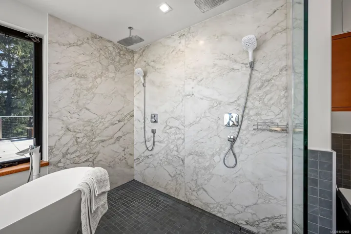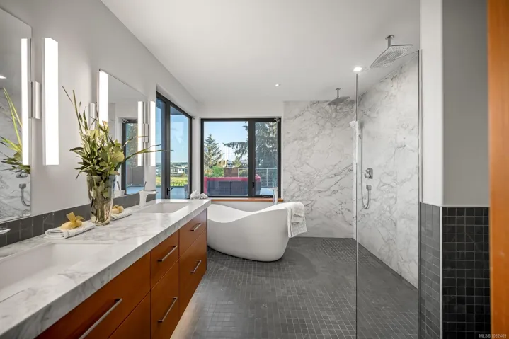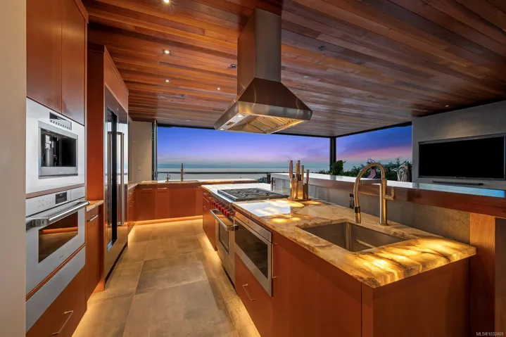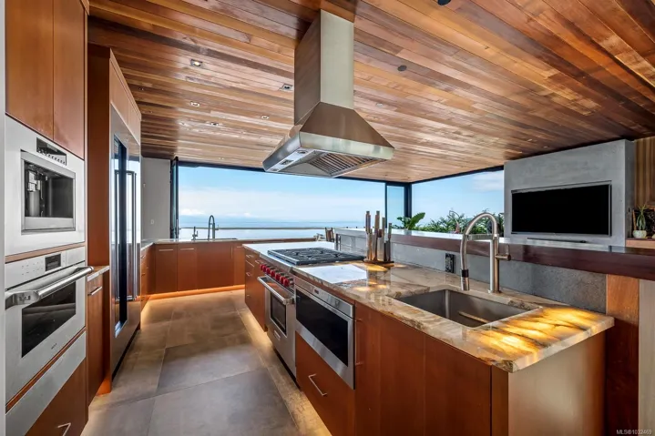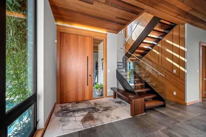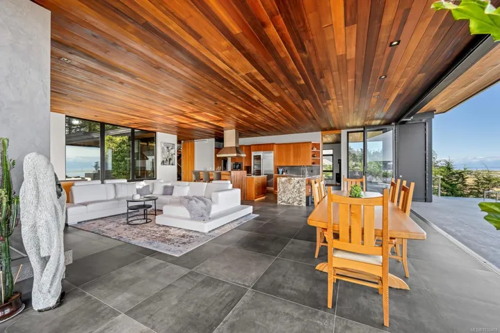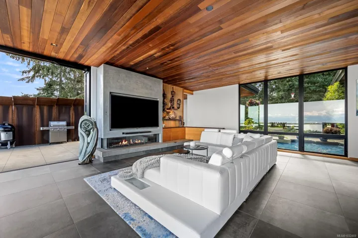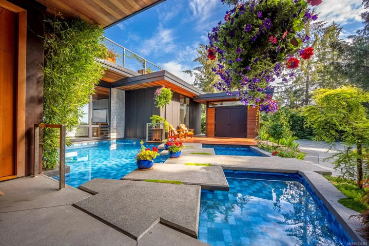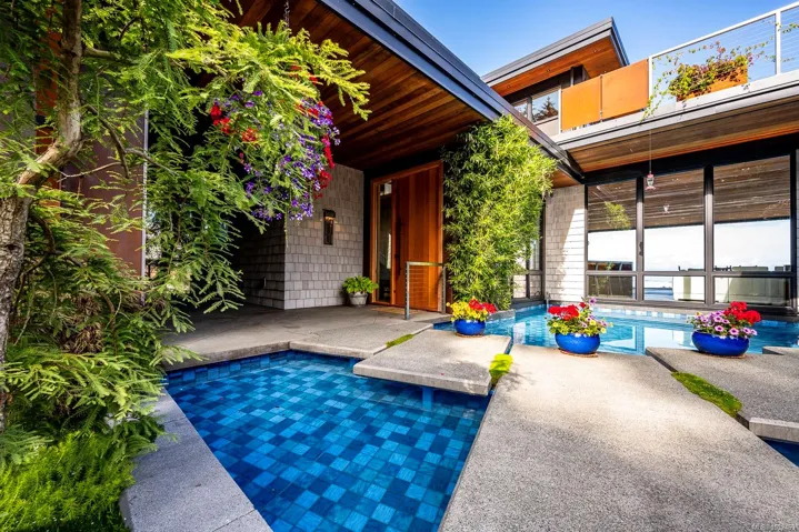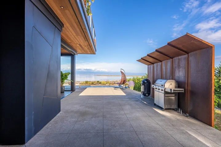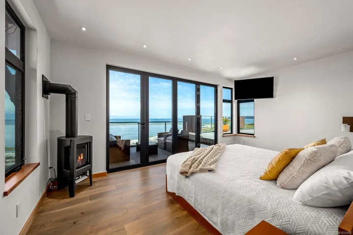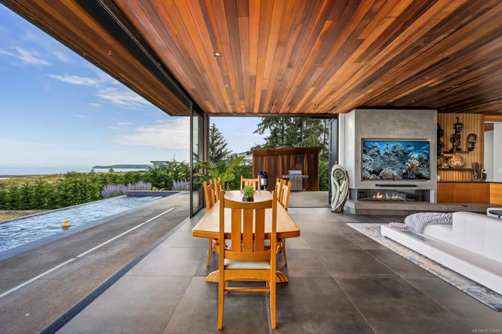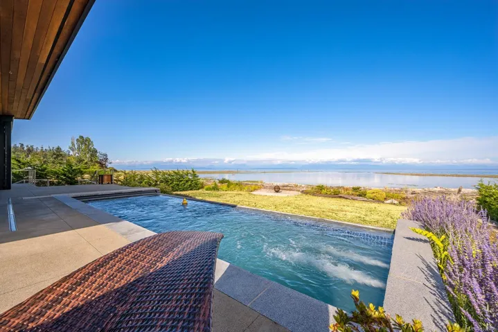 Welcome to the Saratoga Beach House , one of the Comox Valley’s premier walk-on waterfront homes, offering the ultimate Vancouver Island lifestyle. Set on a landscaped 0.8-acre oceanfront lot just moments from the marina, enjoy easy access to boat moorage and launching for spontaneous days on the water. A floating walkway leads to a stunning entrance with panoramic ocean and mountain views. Inside, craftsmanship shines with Brazilian Patagonia granite, custom lighting, a hand-built South American hardwood bar, and automated blinds. Designed for both relaxation and entertaining, the home features a spa-inspired setting with steam shower, jetted tub, hot tub, and an infinity pool with swim jets. Floor-to-ceiling glass doors fully retract, blending indoor and outdoor living. Unwind on the 2,000 sqft rooftop patio and take in breathtaking sunsets. A rare opportunity to own a true West Coast waterfront retreat.