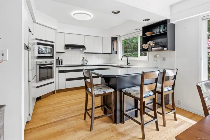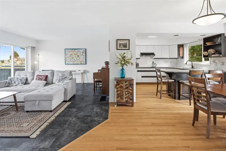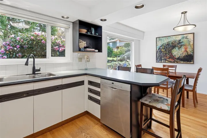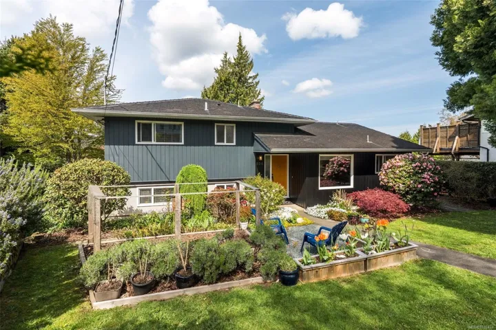 OPEN HOUSE SUN, APR 18 FROM 1-3. Welcome home! Here is the Esquimalt home that you have been waiting for. Located on a quiet cul-de-sac in a beautiful neighbourhood. Perched high, enjoy views over the tops of neighbouring homes or enjoy the oasis-like backyard with a new shed & fire pit. Stunning, irrigated landscaping throughout the property & a veggie plot. Inside, beautiful oak flooring leads you into a bright, kitchen, dining, living area with a wood burning fireplace and access to a large deck. The upper level has 3 bedrooms & a full bathroom, and access to flexible attic space. The lower level offers a cute, open, 1 bedroom suite with a patio entrance and own private green space. The house is heated and cooled with a Heat Pump. There is handy rear laneway access to the driveway and garage.There is so much to see and so much potential with this home. Come & check it out!