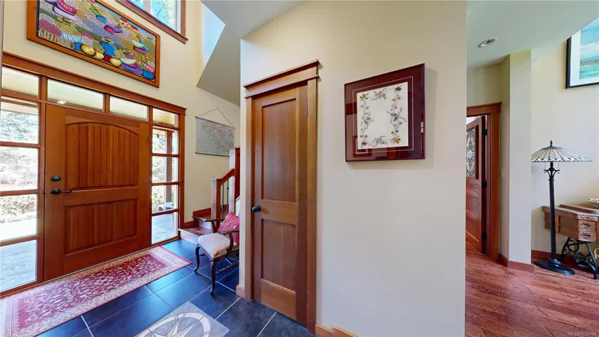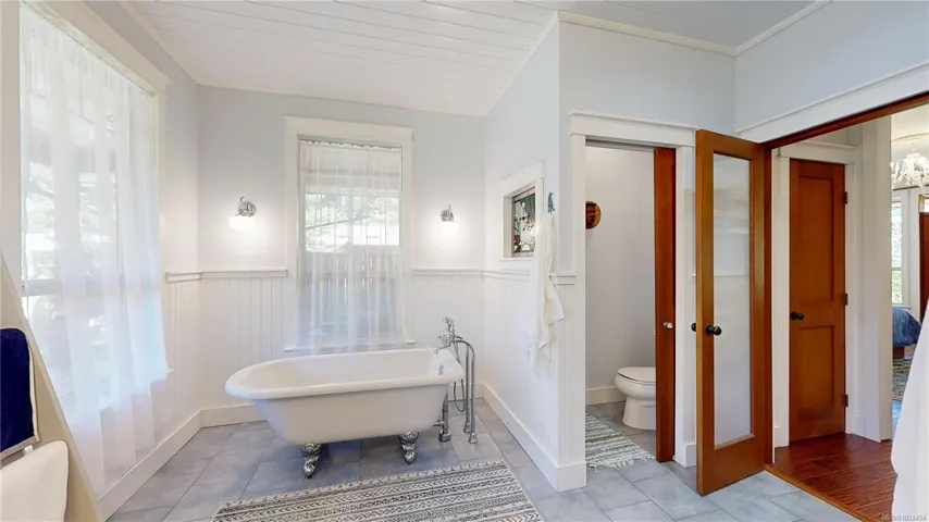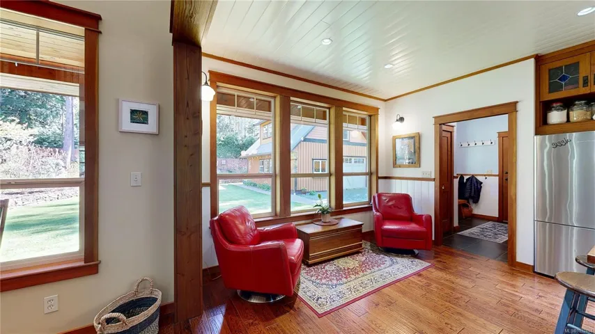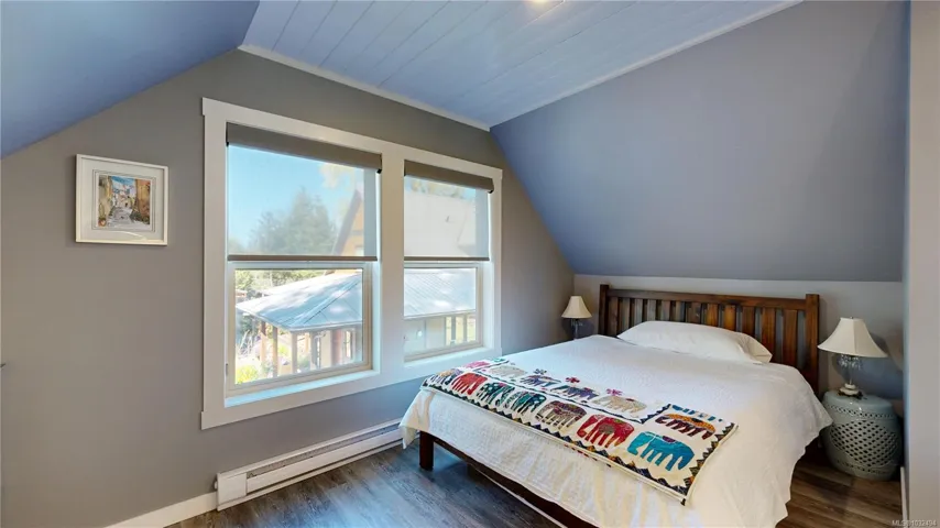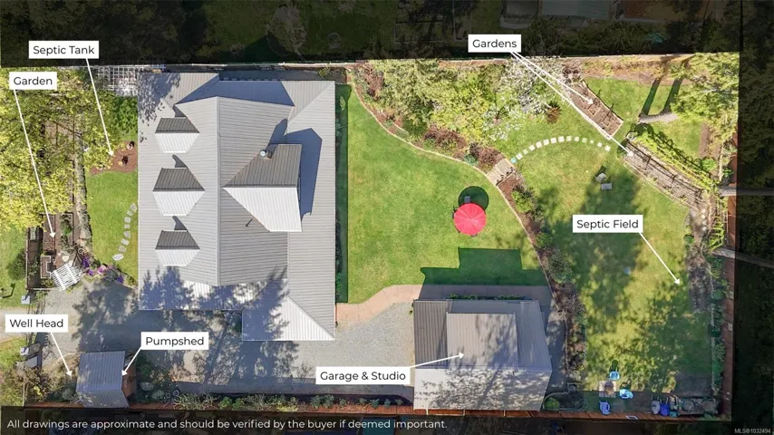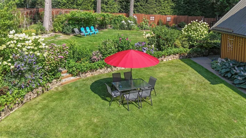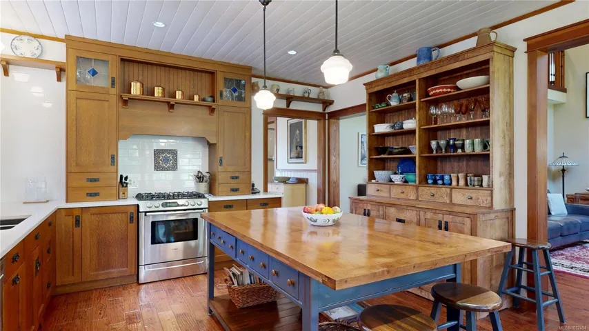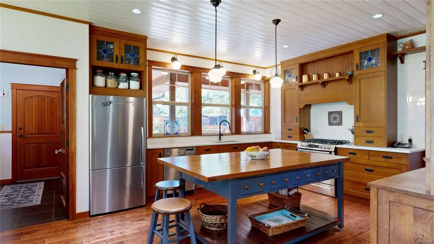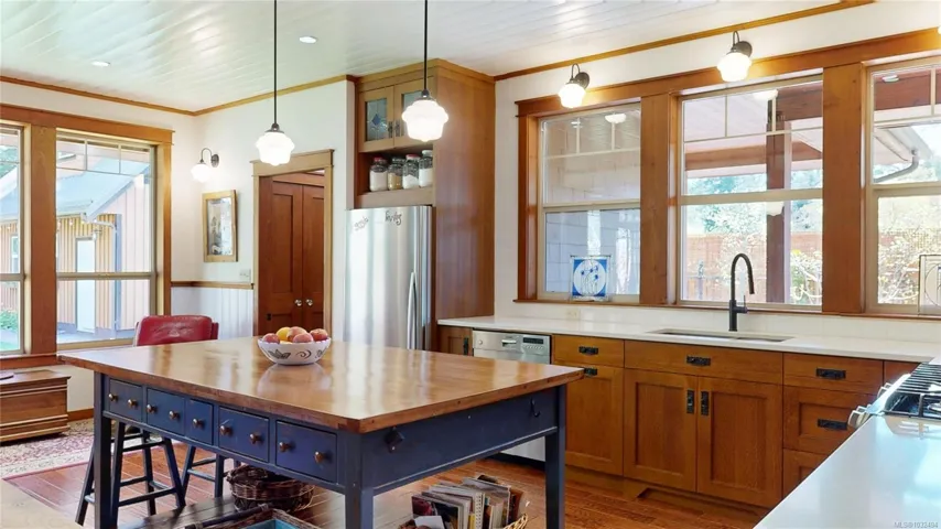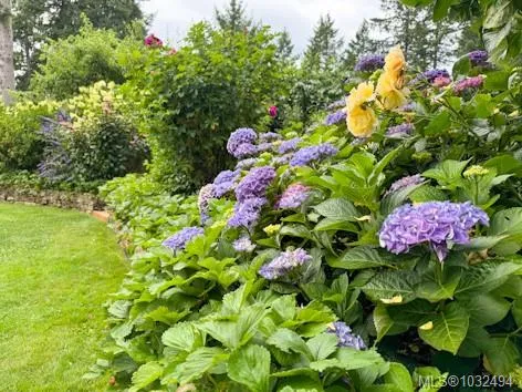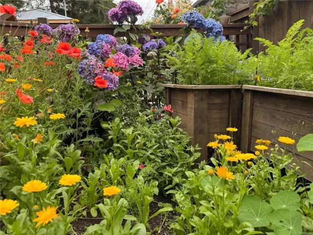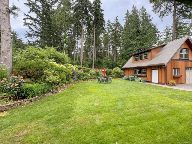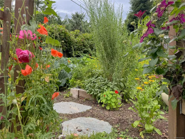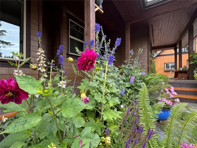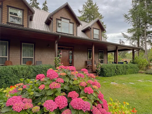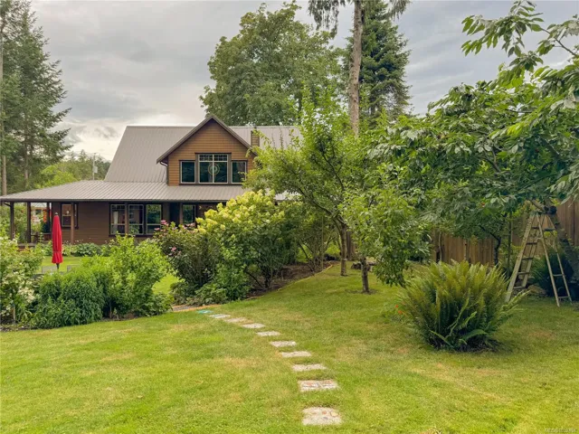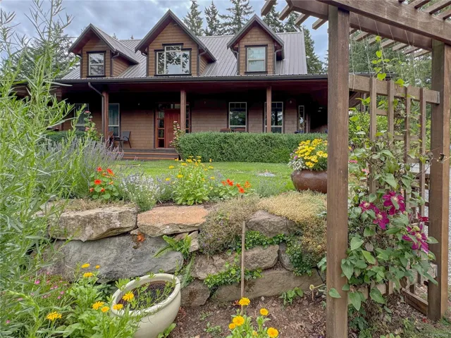 A beautifully curated property featuring a Craftsman-style home and detached garage with studio, set within a fully fenced garden setting.The wood-sided home with a wrap around deck and metal roof is surrounded by lawn, flowering shrubs, established gardens, fruit trees, berries, and raised beds—creating a private garden setting.The 2,338 sq ft home offers 3 bedrooms and 3 bathrooms, with engineered hardwood floors, wainscotting, clear fir trim, solid wood doors, and stained glass accents.9-foot ceilings and large windows bring in natural light. The kitchen features custom wood cabinets and workspace.The living room features vaulted ceilings, a propane fireplace, and heat pump, with in-floor heating on the main and radiant heaters upstairs.The main floor primary includes French doors, walk-in closet, and ensuite with clawfoot tub.Upstairs are two bedrooms and a full bathroom.A 750 sq.ft garage with 600 sq.ft studio above(with bathroom)offers flexible space. Full info pkg is available.