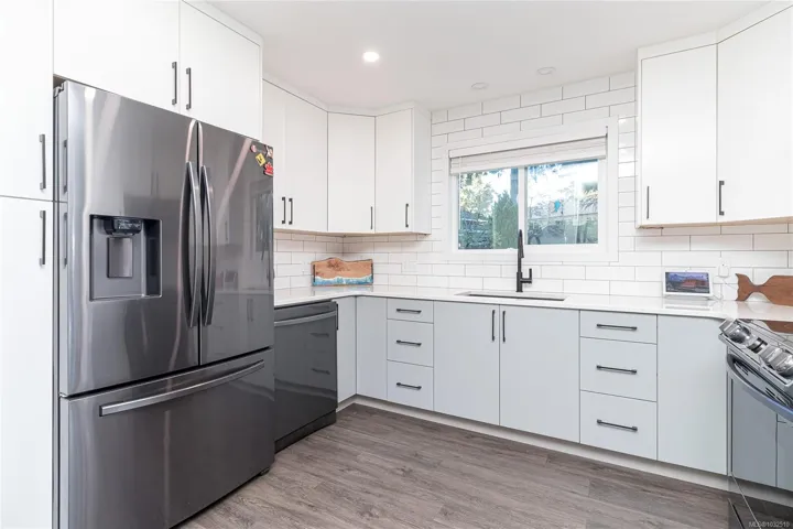 Welcome to B 614 Evans Dr, a beautifully updated single level home offering over 1,200 sq ft of bright and functional living space. The open layout features a spacious living room with a modern fireplace, flowing into the dining area and a fully renovated kitchen with white cabinetry, subway tile backsplash, stainless steel appliances, and ample counter space. The home offers three well-sized bedrooms, a stylishly updated bathroom, and a dedicated laundry area. Step outside to a standout backyard with a large patio, covered seating area, and beautifully maintained lawn, perfect for entertaining or relaxing year-round. A detached shed provides extra storage, and the carport adds convenience. Located in a quiet, family-friendly area close to parks, schools, and amenities.