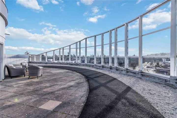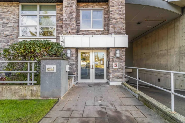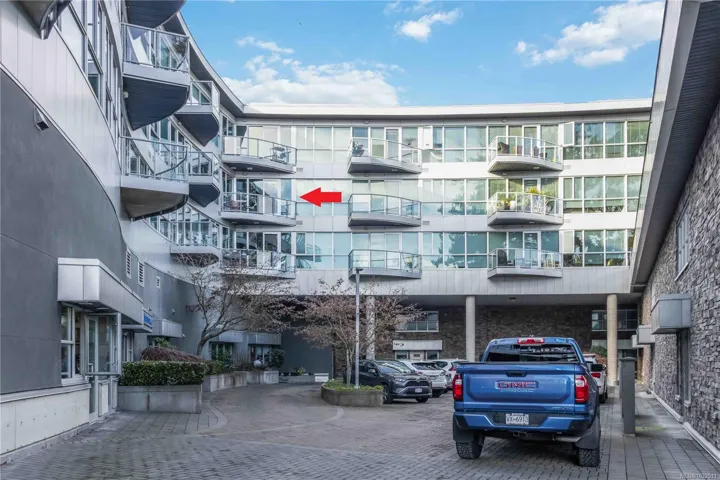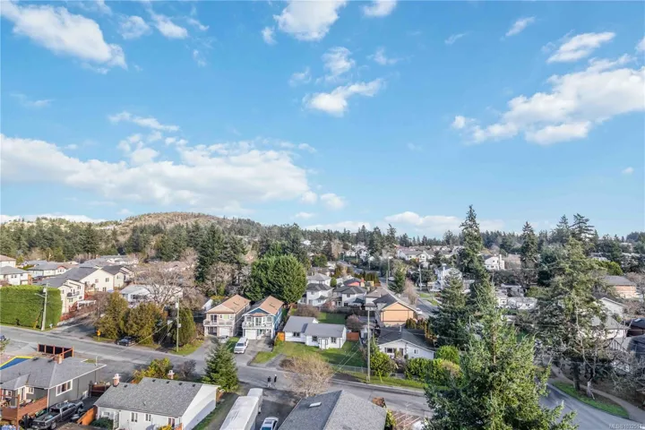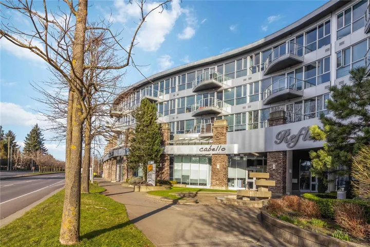 Welcome to the Reflections building, centrally located in Langford at Goldstream Village. This well appointed home is on the quiet side of the building and features floor-to-ceiling, south-east facing windows flooding the space with light. The spacious kitchen designed for functionality and style, offers full KitchenAid appliance package, ample counter space for two to work and a convenient sit-up bar. A thoughtful floor plan includes separate dining area and inviting living space with a modern electric fireplace ideal for everyday living and entertaining. The bedroom accomodates a king-size bed and includes walk-in closet and cheater ensuite featuring a walk-in shower. A separate den or storage area and full-size in-suite laundry add to the home-like feel. A prime location with easy highway access for commuters and walking distance to restaurants and groceries. Enjoy a rooftop patio, pool, and rubberized walking track—everything you need, all in one place including 1 secure parking.