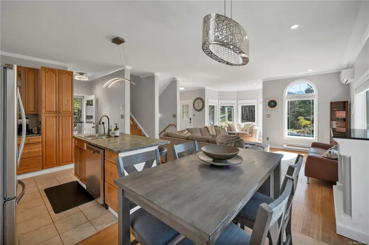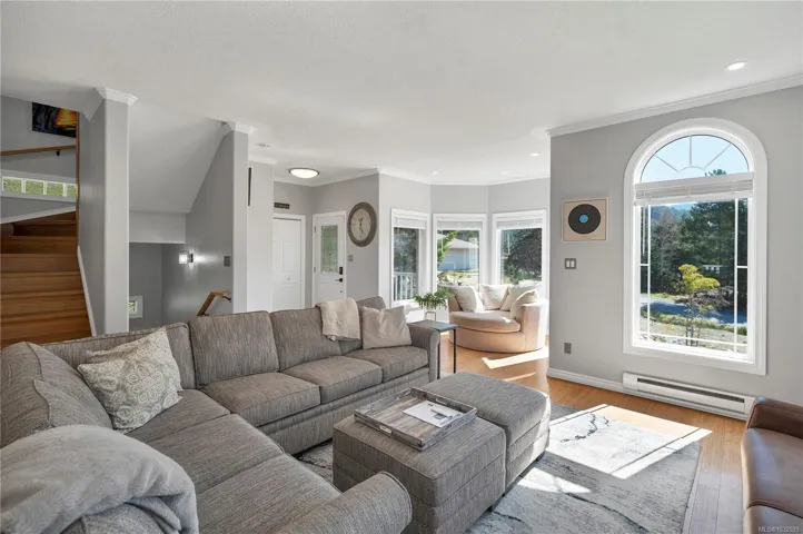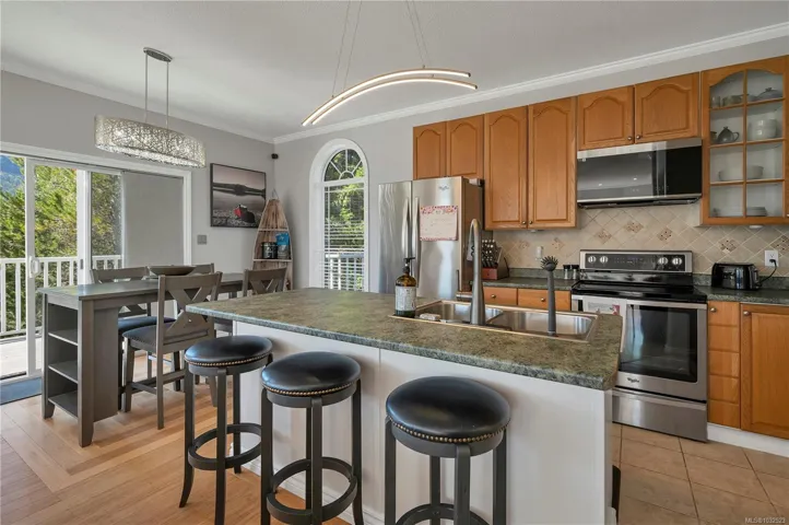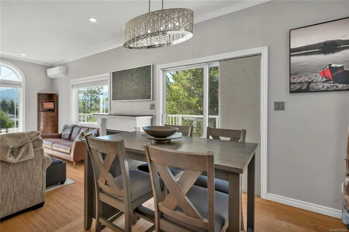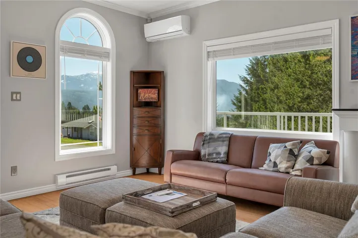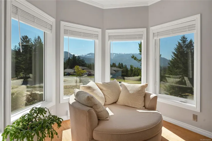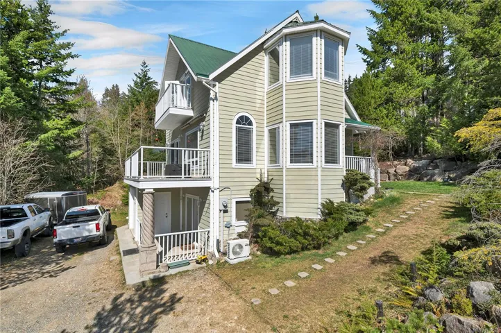 Surrounded by scenic Vancouver Island Mountains, this unique 2676sqft home has incredible views from every floor. The custom built, 3 level, 3bdrm + den/office home reflects quality & craftsmanship throughout. The main level offers an open kitchen, dining & living areas with full height windows and bamboo floors. There’s a wrap around deck on the main level and a separately accessed bdrm complete with ensuite & door out to the deck. The upper level is dedicated to the primary suite, designed for relaxation with a sunken jetted tub and full ensuite. The lower level contains a bedroom with a 3-piece ensuite and covered deck, a laundry room and den. This level also provides access to the garage and an indoor workshop equipped with 220-volt power. The workshop could be converted back into a fourth bdrm with its own separate entrance and ensuite. A thoughtful design inspired by a bed and breakfast concept, this home offers many options.